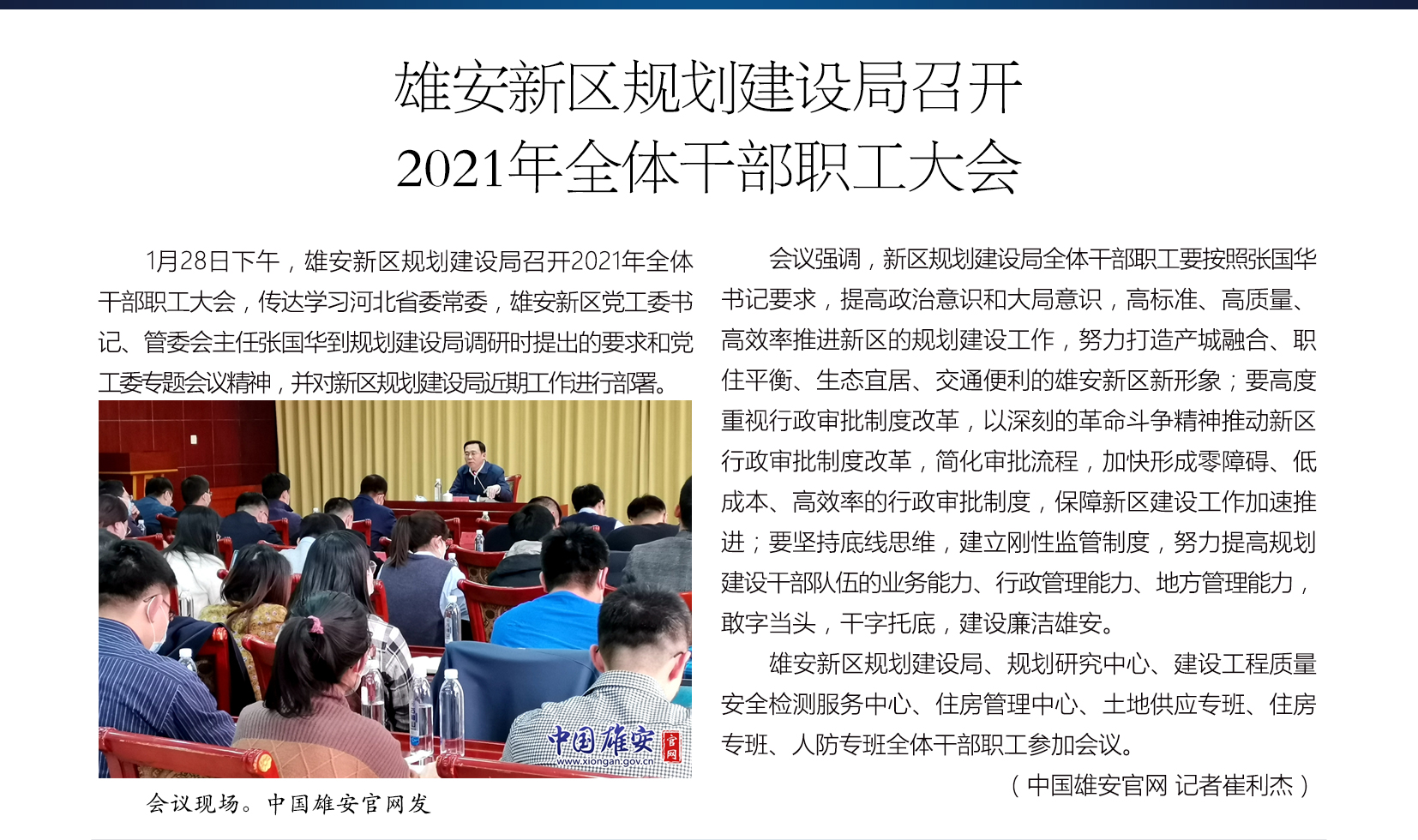 敢字当头,干字托底!雄安新区规划建设局召开2021年全体干部职工大会