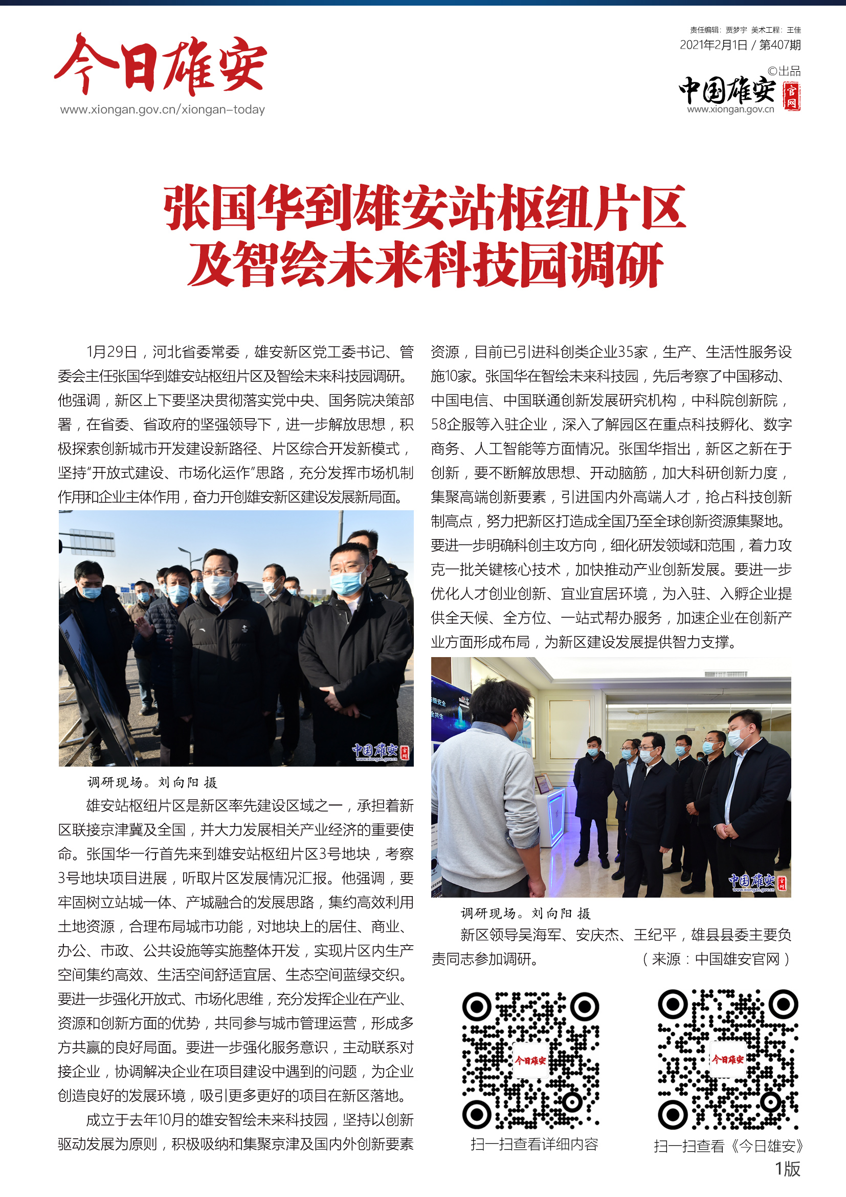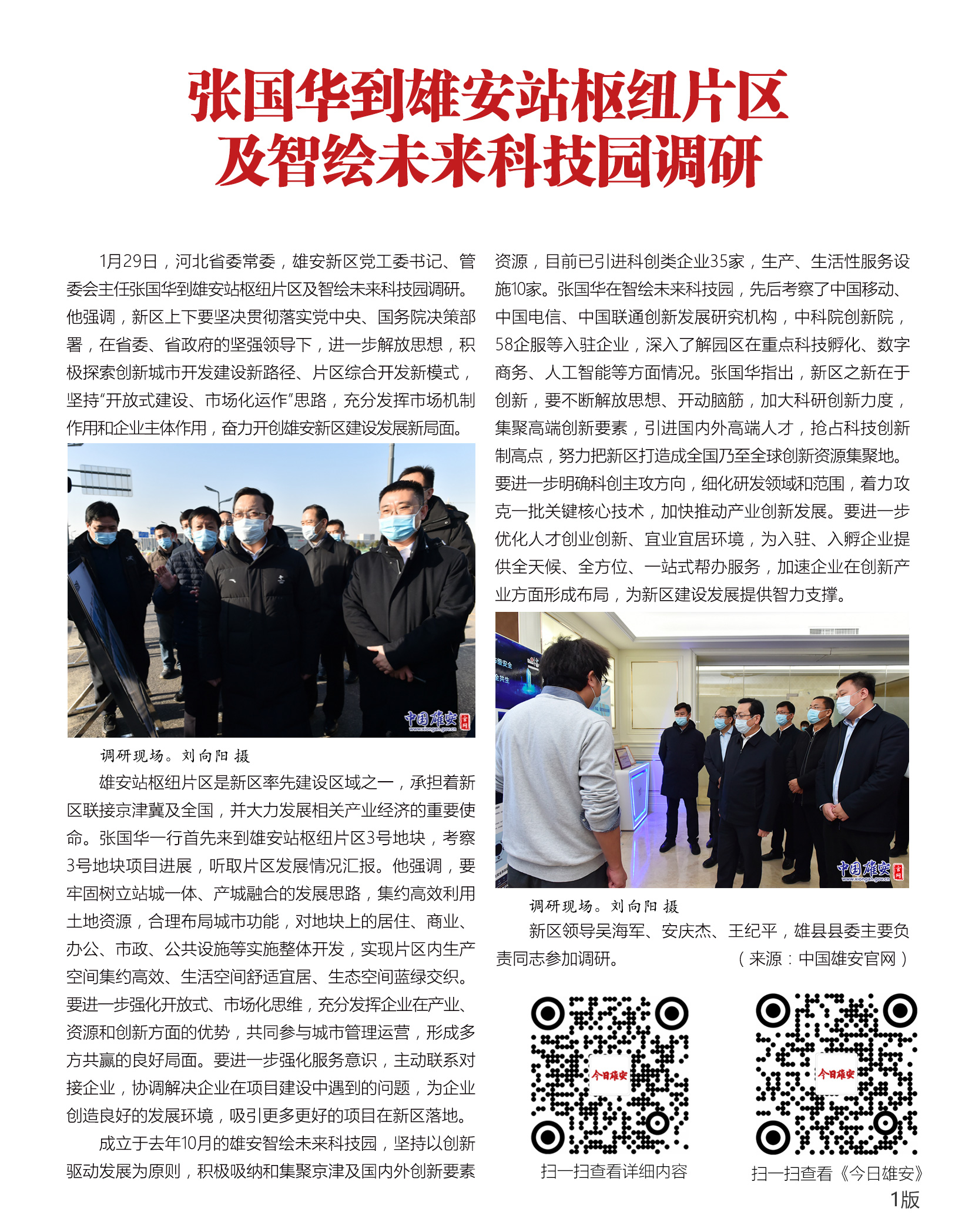 张国华到雄安站枢纽片区及智绘未来科技园调研