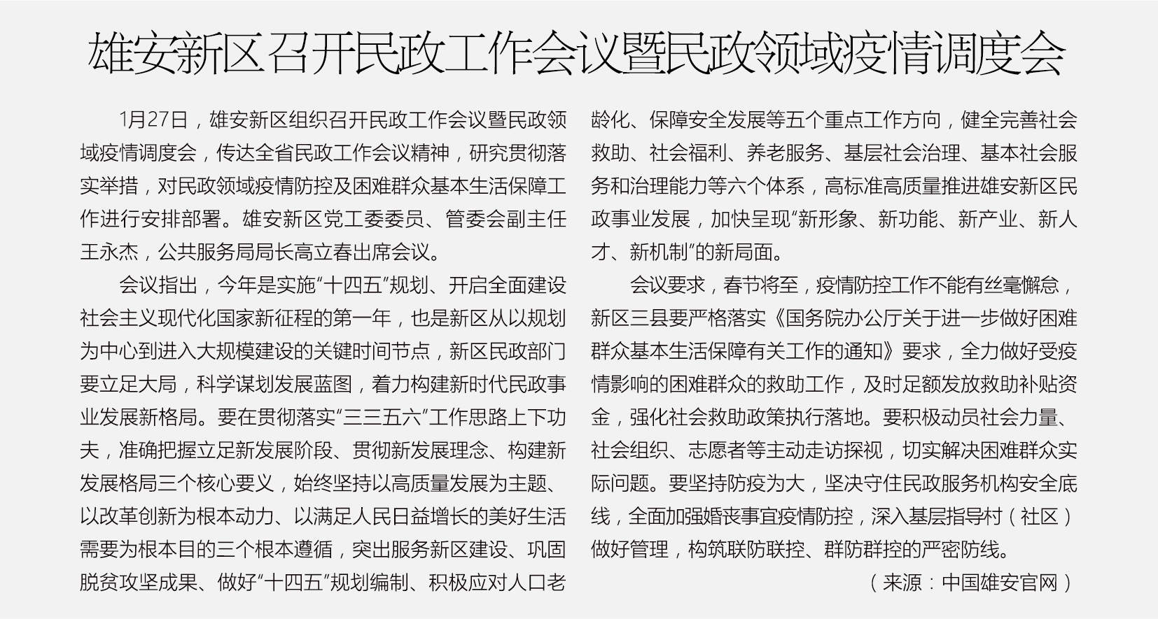 雄安新区召开民政工作会议暨民政领域疫情调度会