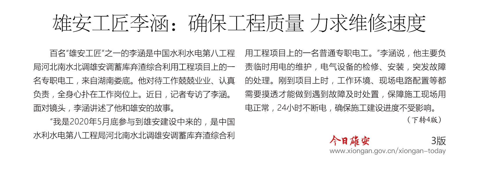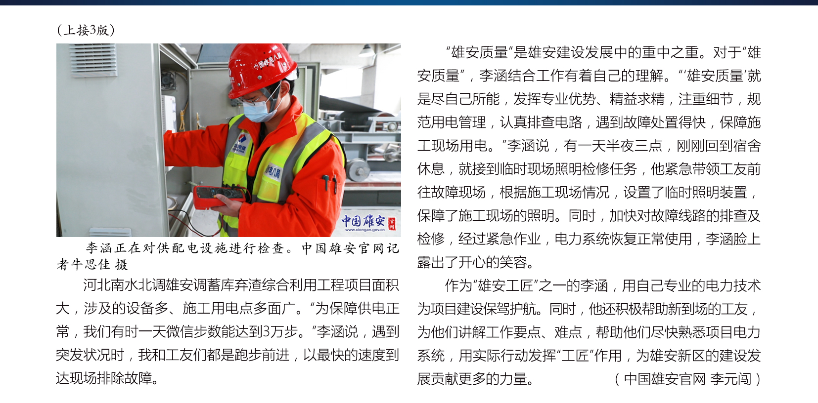 我和雄安的故事㉞丨雄安工匠李涵:确保工程质量 力求维修速度