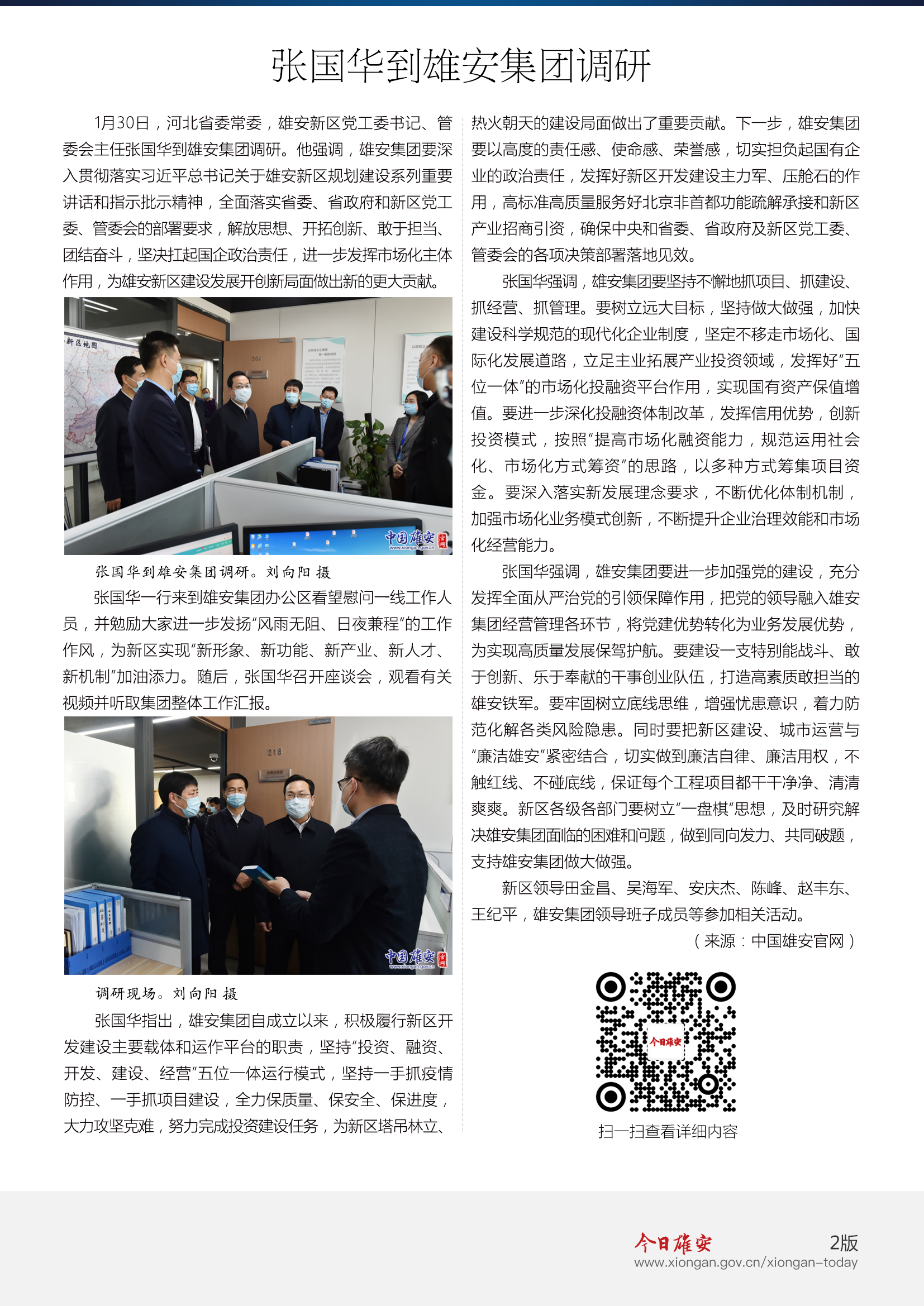 坚决扛起国企政治责任,充分发挥市场化主体作用,为雄安建设发展开创新局面做出更大贡献。