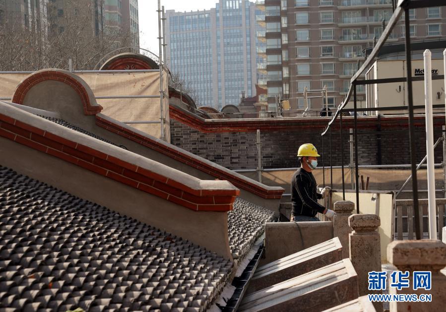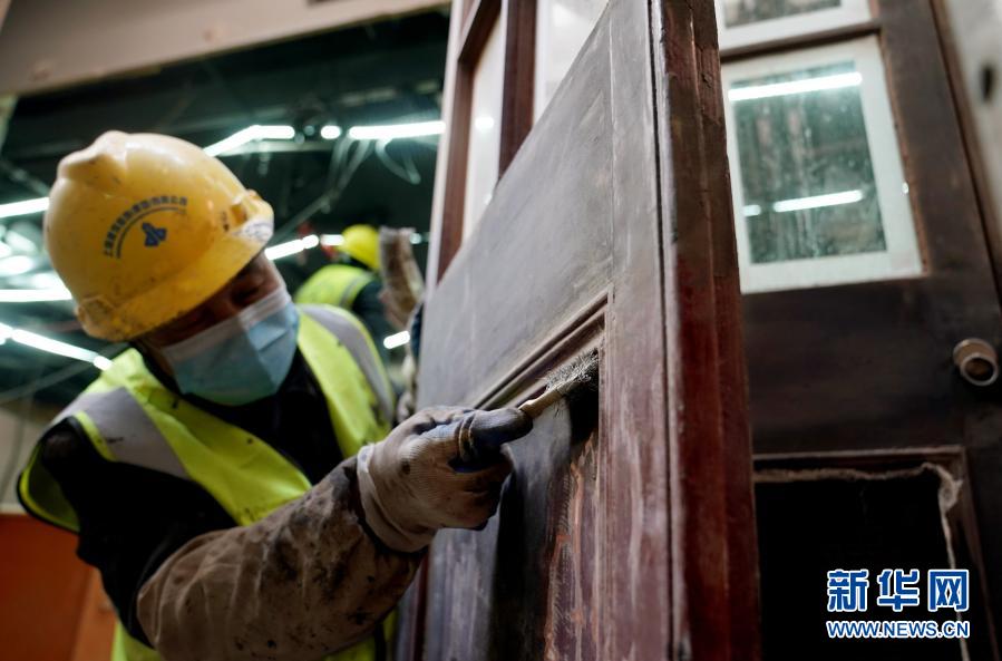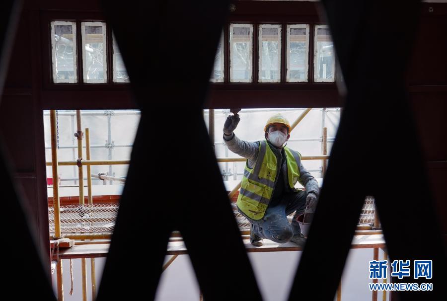 这是中共一大会址纪念馆的修缮现场(1月14日摄)。