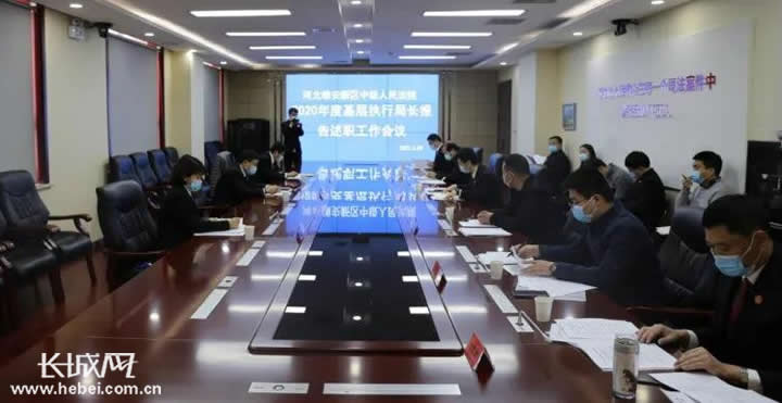 为提升执行工作质效,全面加强执行队伍建设,近日,雄安新区中级人民法院(以下简称雄安中院)召开2020年度基层人民法院执行局长报告述职工作会议。省人大代表、驻新区省级媒体代表和新区中院执行局、立案庭、政治部干警组成的评议组成员共6人及三县法院执行局长参加会议,雄安中院执行局全体成员列席会议。