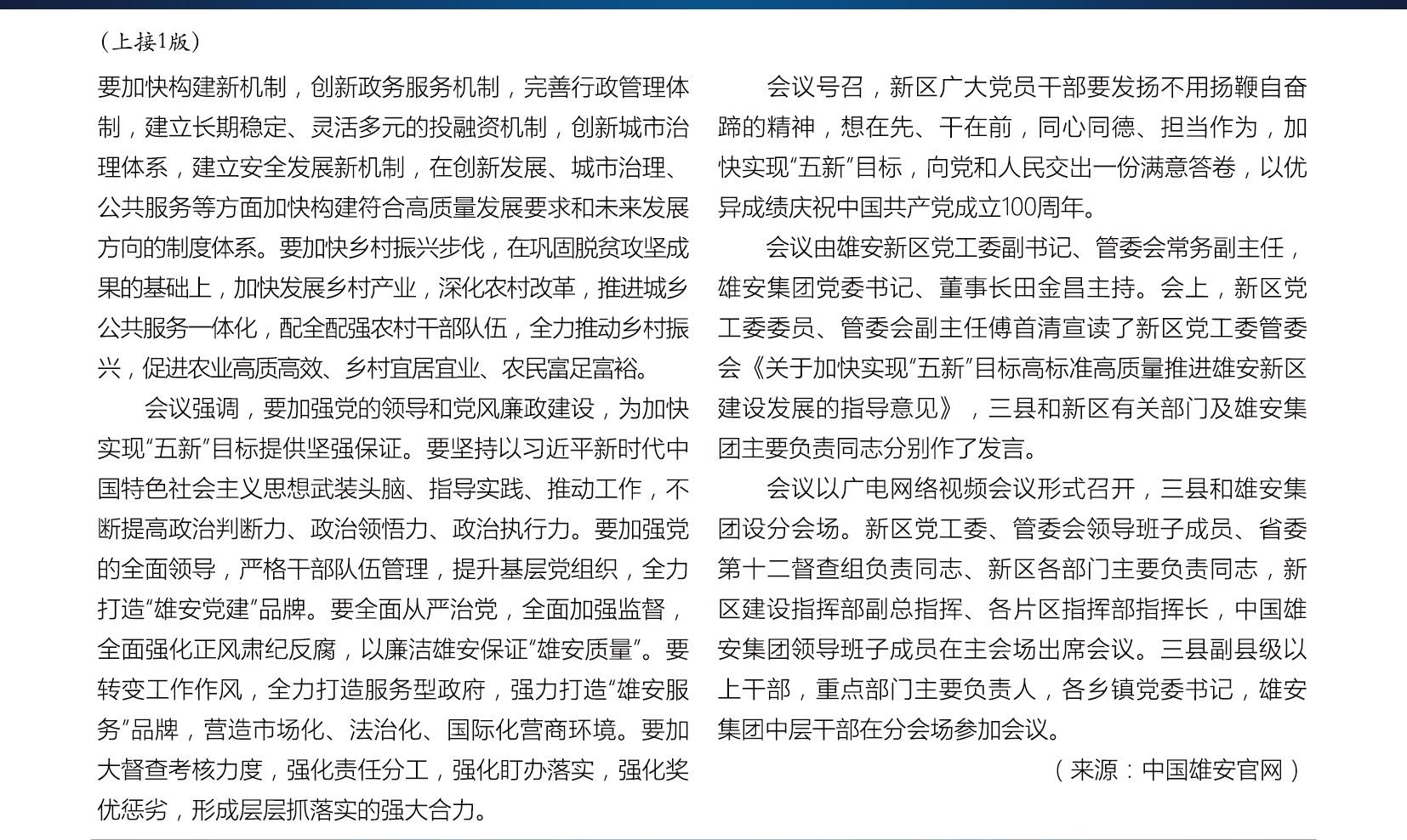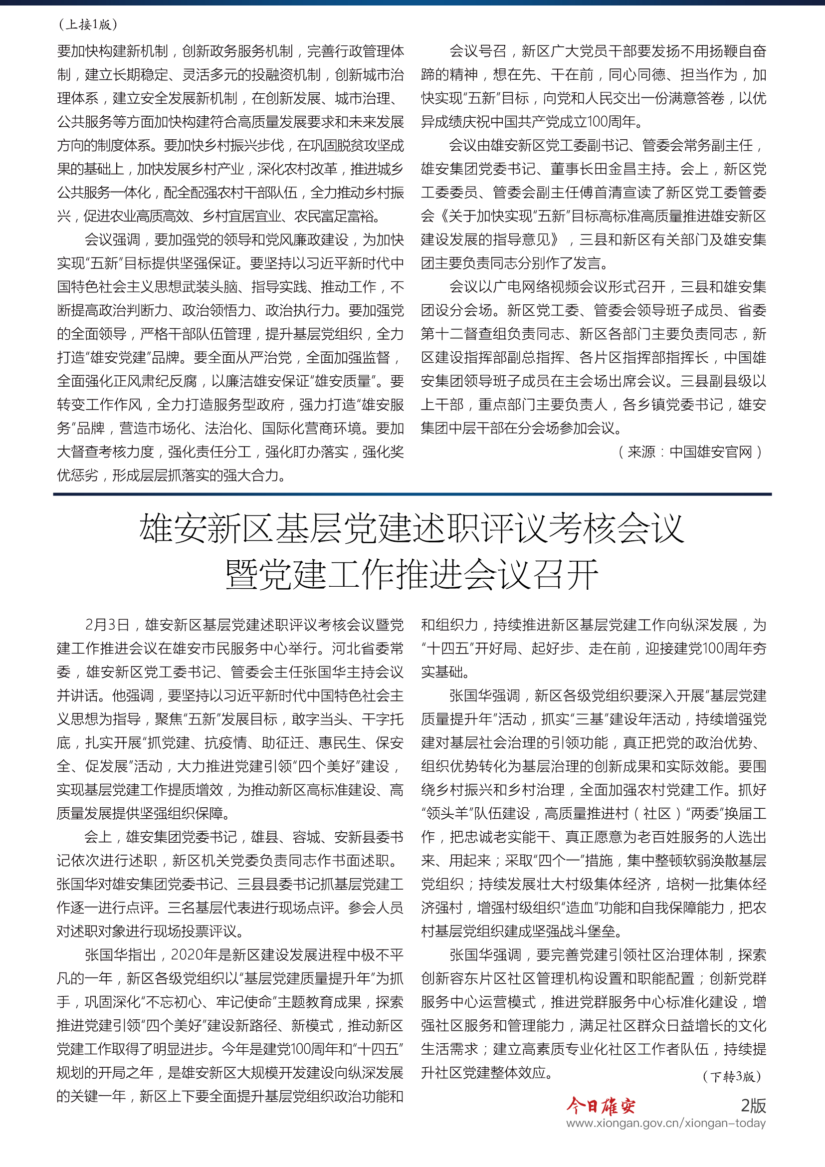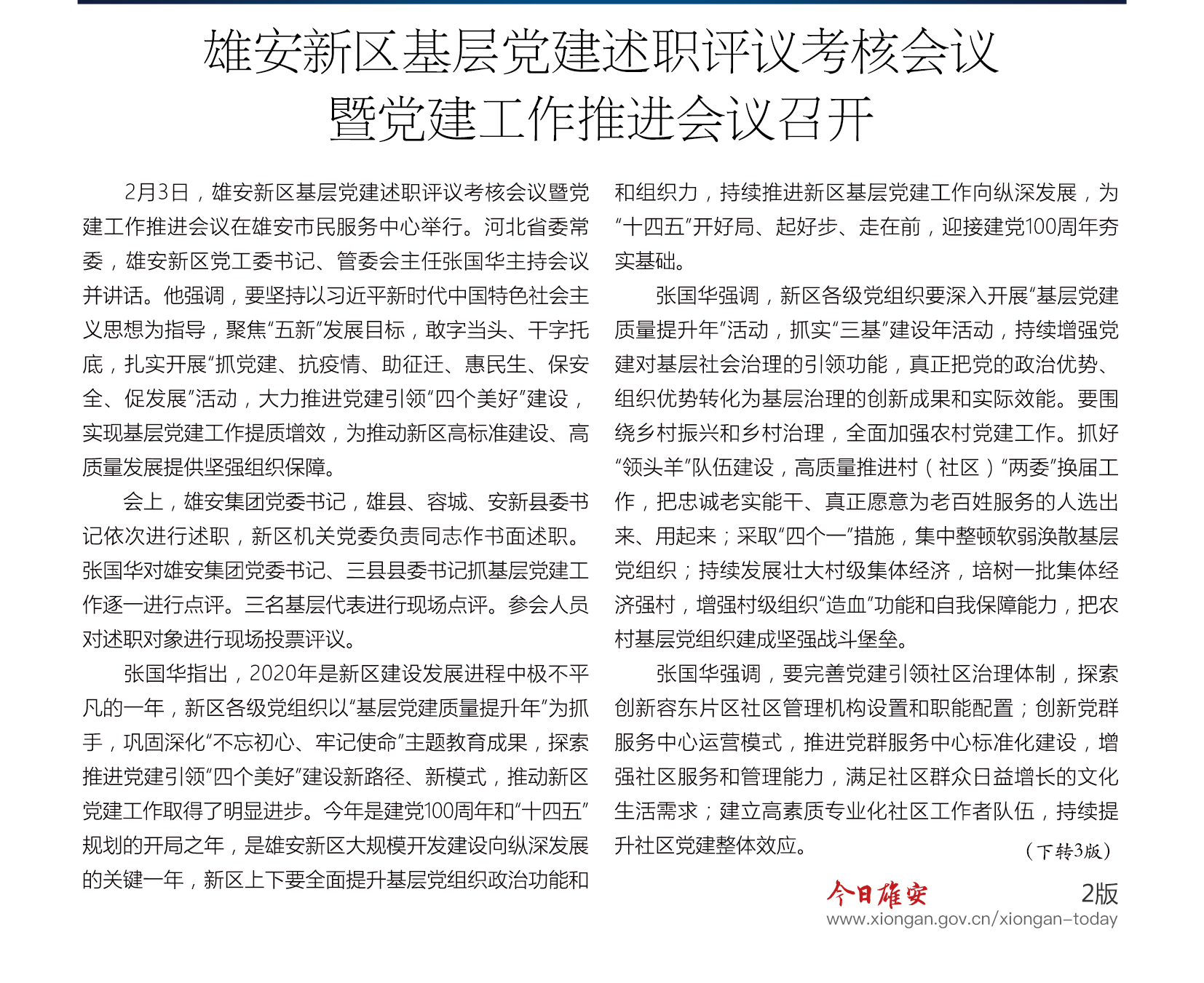 雄安新区基层党建述职评议考核会议暨党建工作推进会议召开