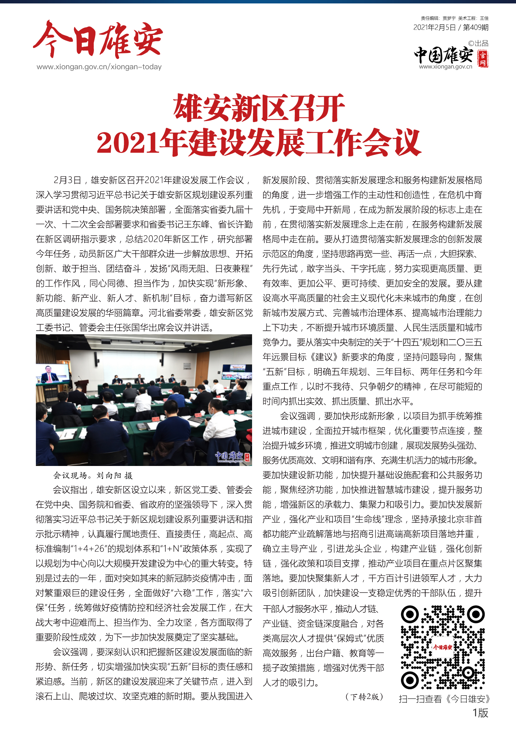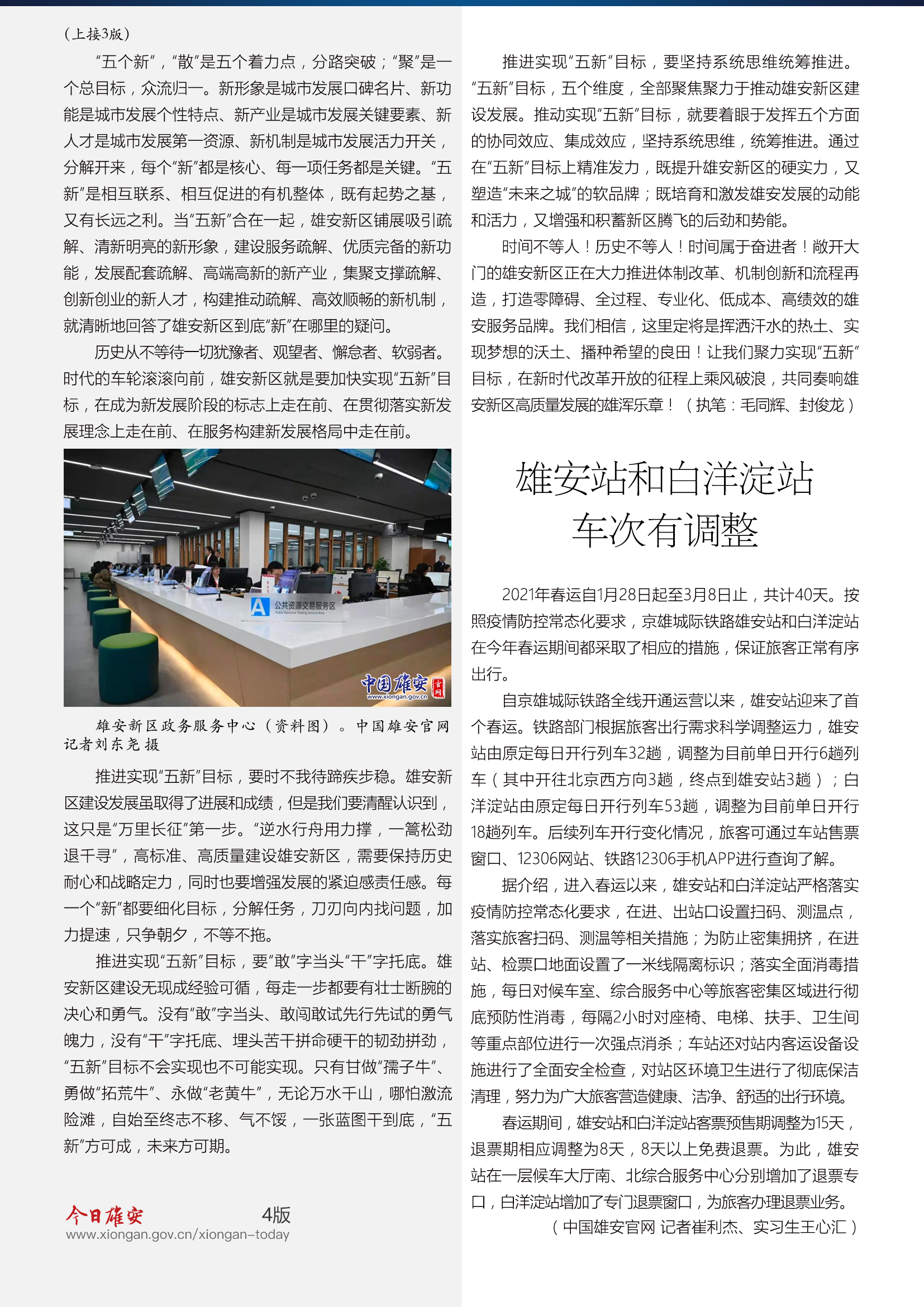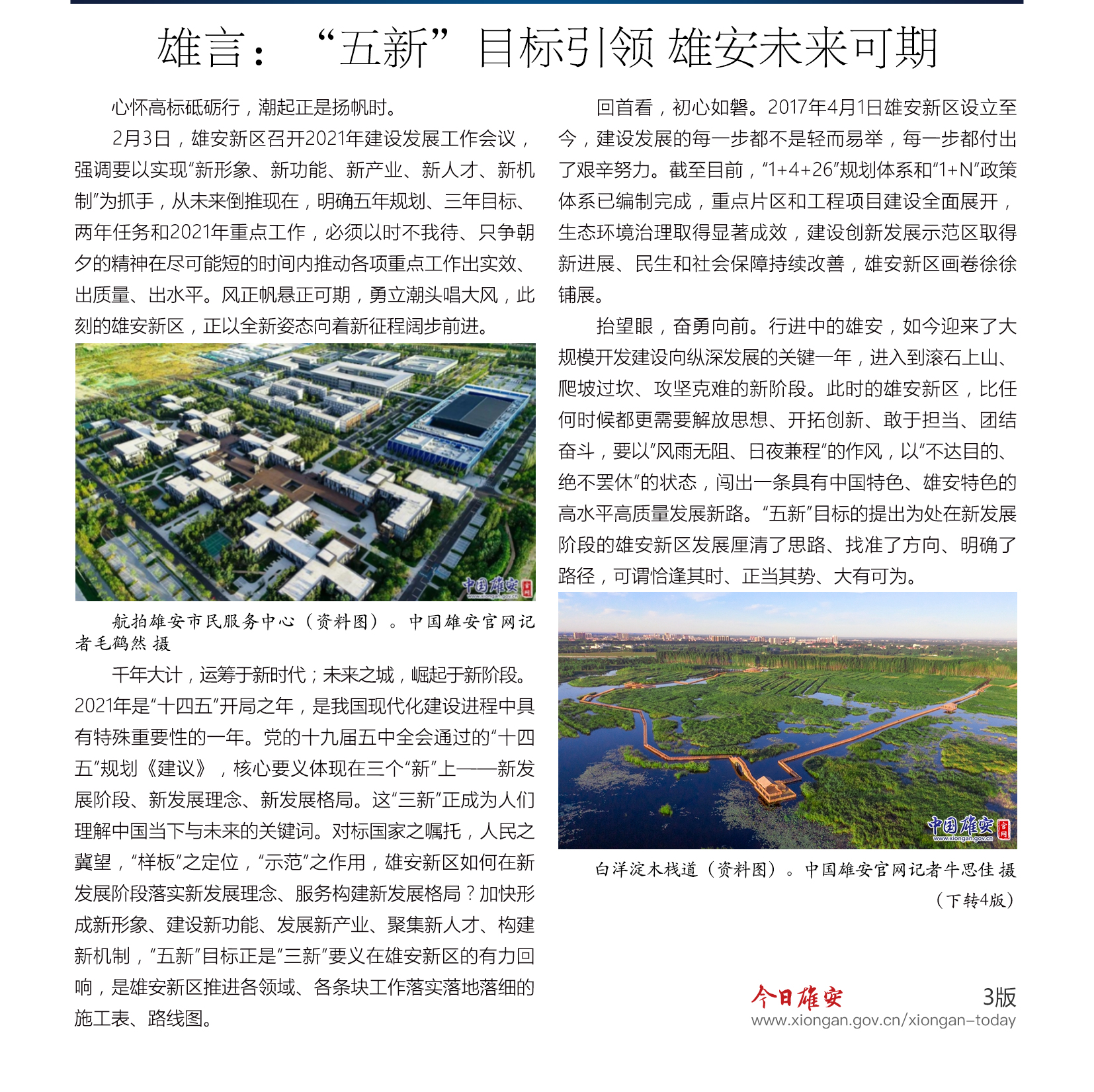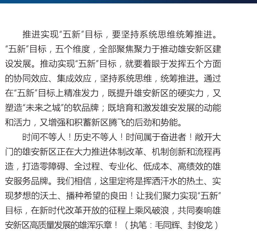 “五新”目标的提出为处在新发展阶段的雄安新区发展厘清了思路、找准了方向、明确了路径,可谓恰逢其时、正当其势、大有可为。