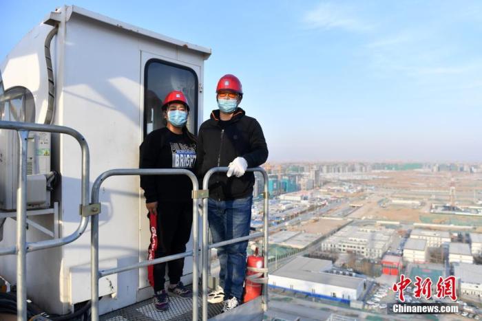 郇存民戴着手套,挎着背包,身手矫健地爬上70米高的塔吊(塔式起重机)。这个新年,他准备和妻子在高空之上度过。