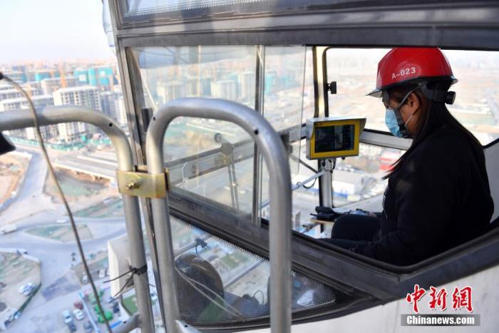 图为2月4日,黄美娇正在操作塔吊进行作业。中新社记者韩冰 摄