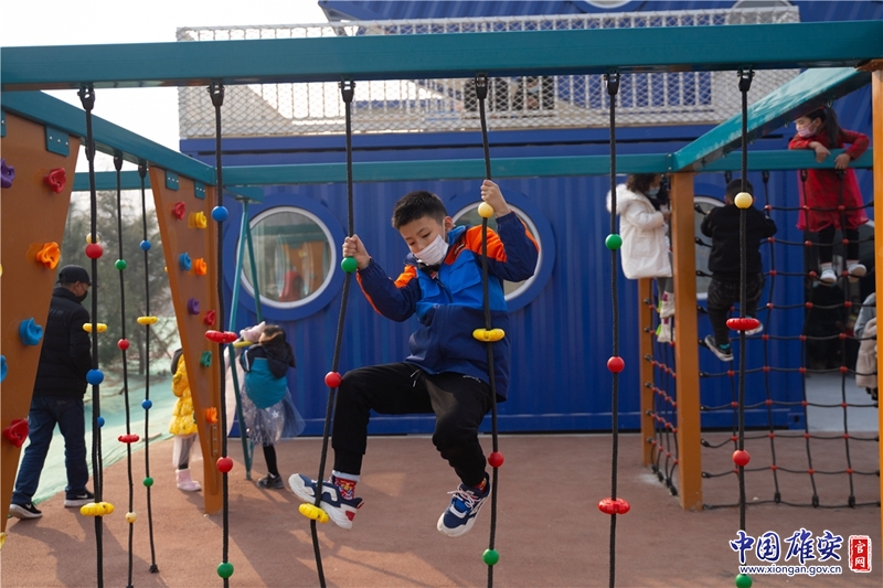 新年第一天,小朋友在“漫生活”街区里玩耍。中国雄安官网记者刘东尧 摄
