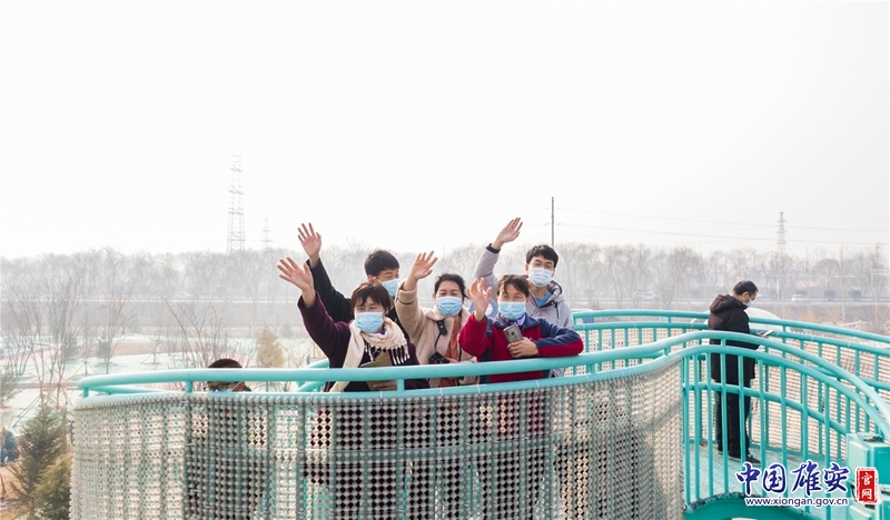 新年第一天,新区群众在“漫生活”街区媒体Logo塔上拍照留念。中国雄安官网记者高盟 摄