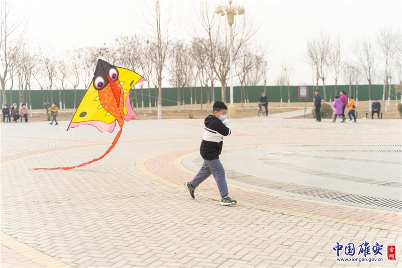 新年第一天,小朋友在公园里放风筝。中国雄安官网记者刘东尧 摄