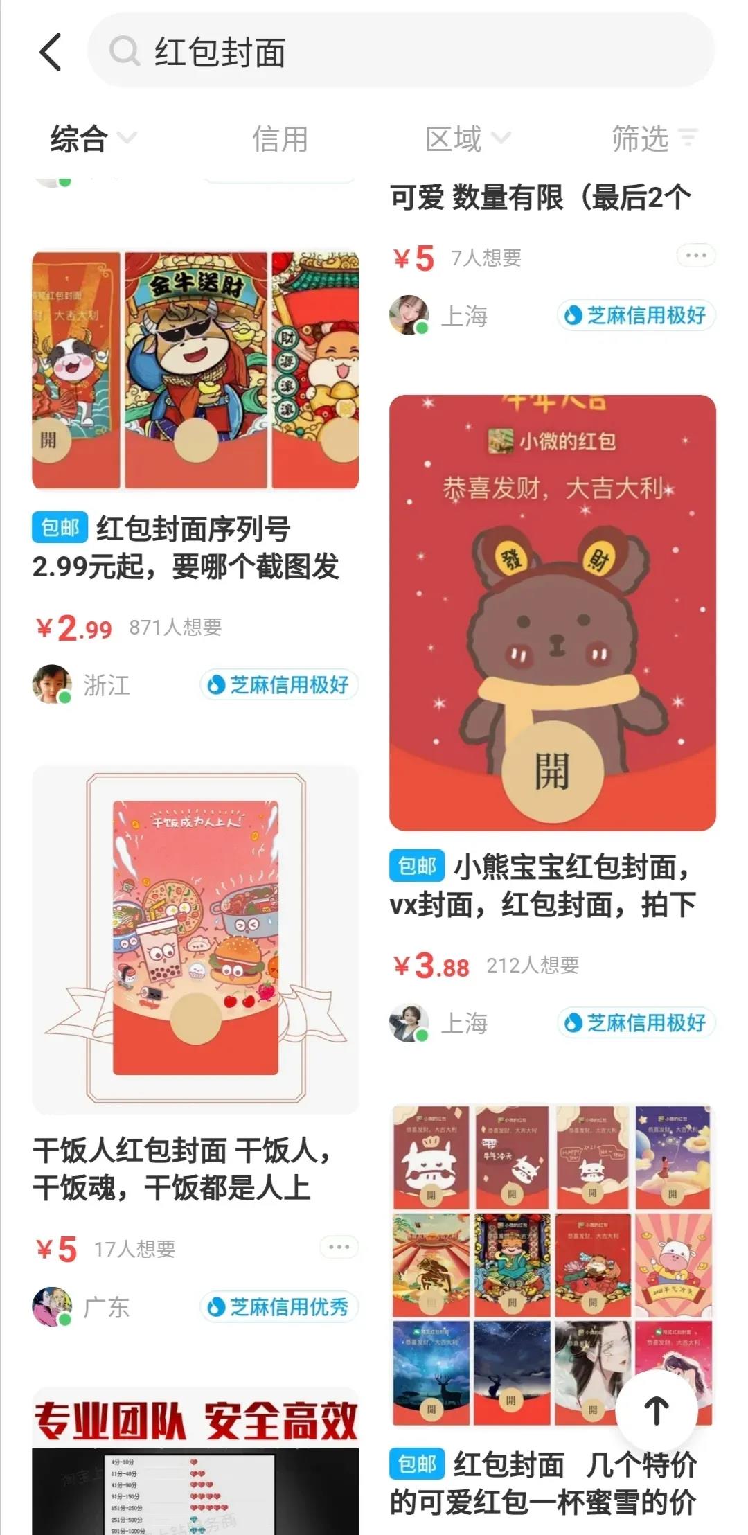 二手商品交易平台上有不少卖家出售微信红包封面