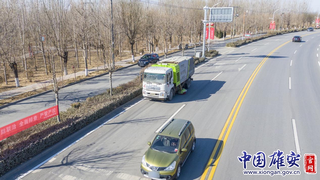 环卫车正在清洁路面。中国雄安官网记者牛思佳 摄