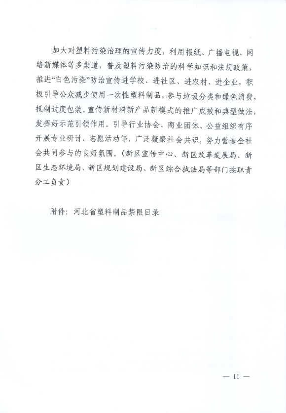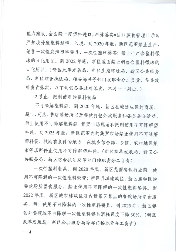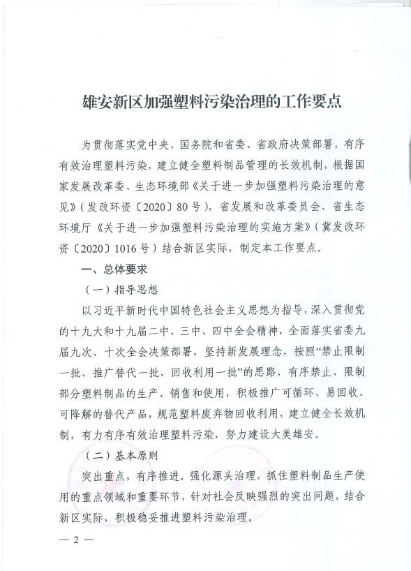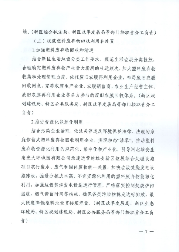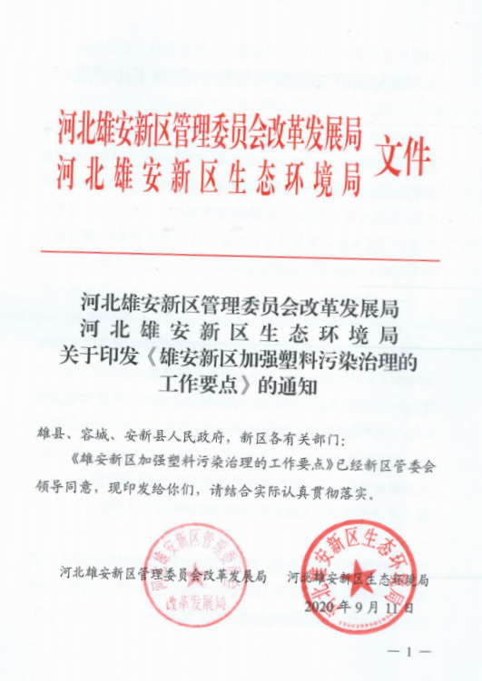河北雄安新区改革发展局 生态环境局关于印发《雄安新区加强塑料污染治理的工作要点》的通知