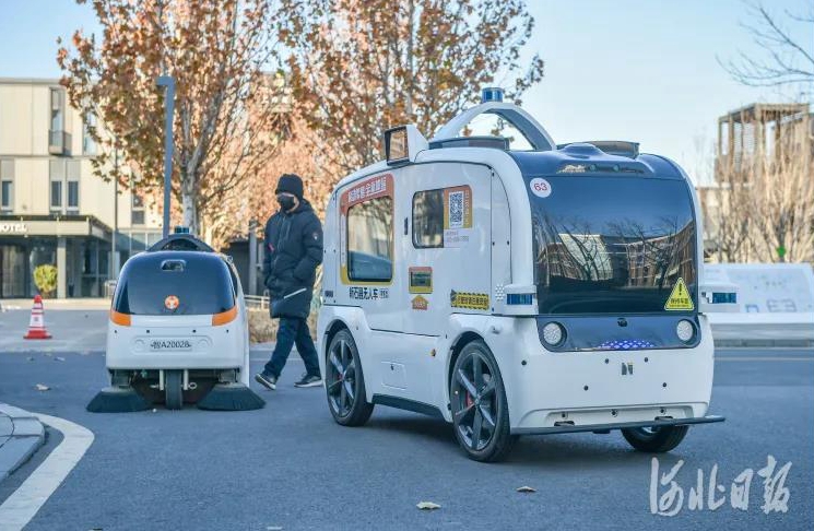 雄安市民服务中心,无人零售车正在运行。海绵绿地、智能路灯、生态停车场、人脸识别的无人超市、菜鸟无人物流车……徜徉在雄安市民服务中心,各种创新元素共同搭建起“智慧城市”的雏形。河北日报资料片 记者赵杰 摄