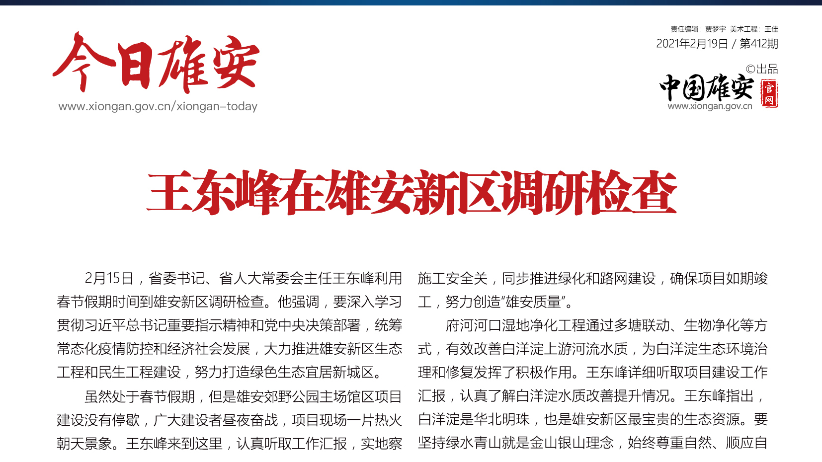 “政府工作报告提出,聚焦创造‘雄安质量’,以高质量开发建设促进高标准承接疏解,以高水平开放创新汇聚全球高端要素资源,进一步坚定了我们推进雄安新区建设发展的决心和信心。”省人大代表,省委常委,雄安新区党工委书记、管委会主任张国华表示。