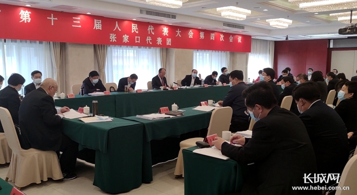 张家口代表团的代表们正在审议。长城网记者 赵娇莹 摄