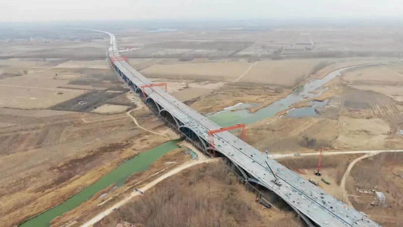 在桥面铺装施工中,SG5标白沟河特大桥使用超高性能混凝土(UHPC)进行桥面铺装,与传统混凝土相比,具备轻质高强、安全耐久等优点,可有效延长结构寿命。目前6台UHPC拌和设备、3套摊铺设备已进场,正在进行安装调试。待气温满足施工要求时,即可开展大规模作业。为保证沥青路面摊铺质量,SG6标采取“货比多家”的方式,确保级配碎石及原油质量,并做好沥青混合料的温度保障,每天提前对机械进行预热,确保出料温度控制在160至170摄氏度,并安排专人负责监督沥青路面的碾压遍数,保证摊铺质量。