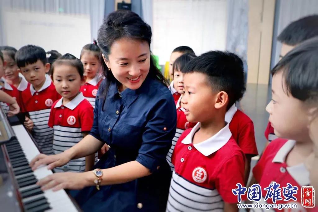 北京市六一幼儿院雄安院区校长殷珺和孩子们互动。中国雄安官网发