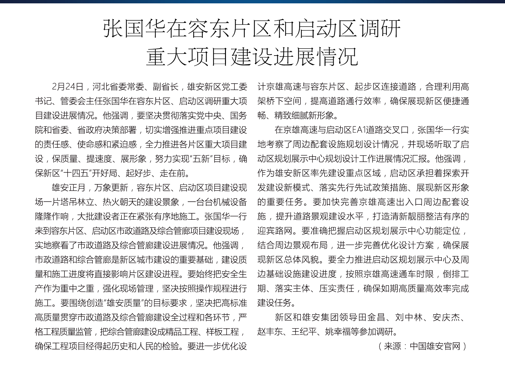 张国华在容东片区和启动区调研重大项目建设进展情况