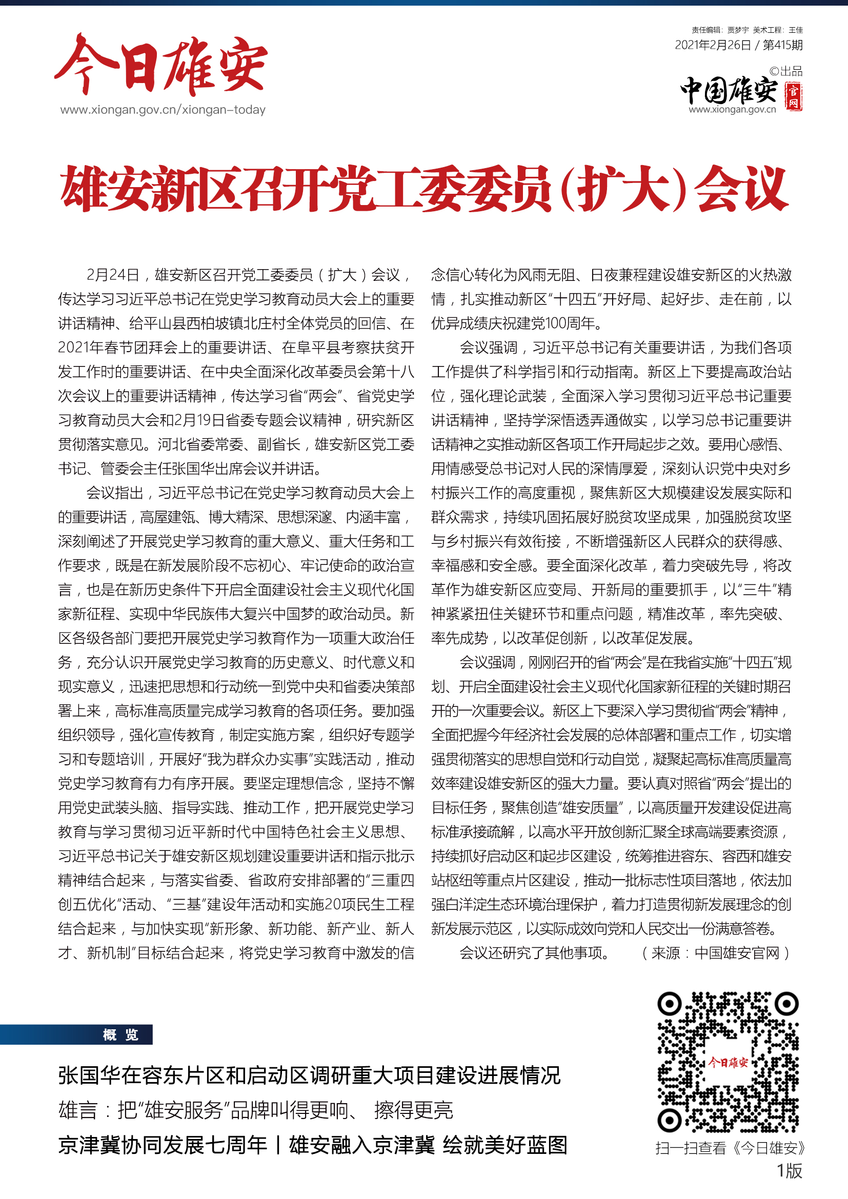 【雄安之声】雄安新区召开党工委委员(扩大)会议
