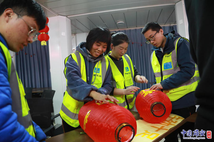 工友们给征迁群众工友准备节日灯笼。中建三局刘淼 摄
