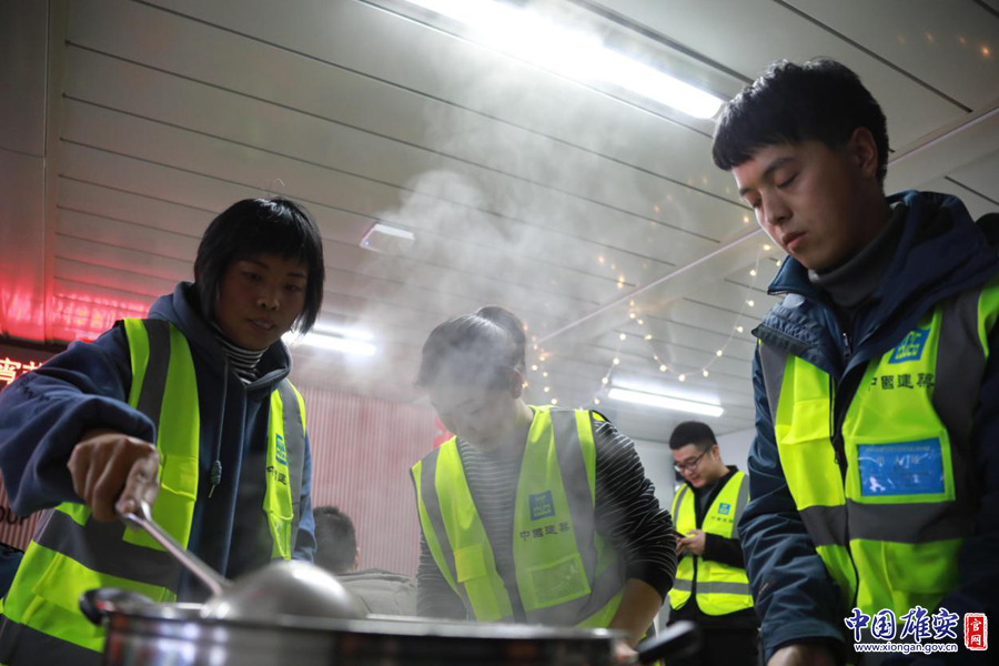 工友们正在煮元宵。中建三局刘淼 摄