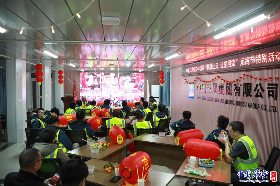 工友们吃元宵、看元宵晚会,其乐融融。中建三局刘淼 摄