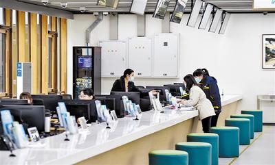 3月1日,办事人员在雄安政务服务中心的窗口前办理业务。 河北日报记者耿辉 摄