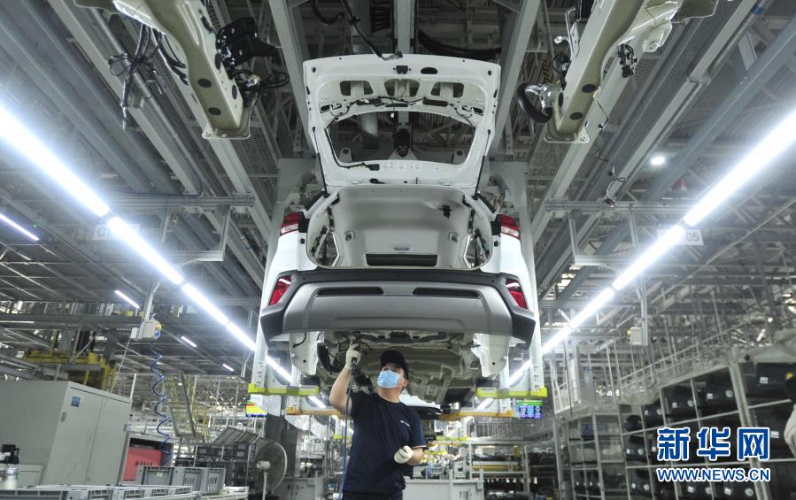 北京现代沧州工厂的工人在生产线上工作(2020年5月19日摄)。新华社记者杨世尧 摄