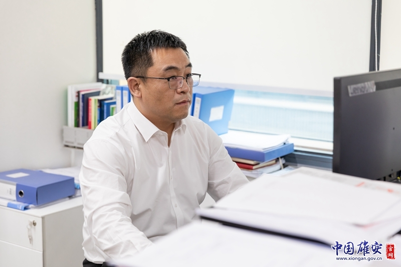 日常工作中的石运甫。中国雄安官网记者毛鹤然 摄