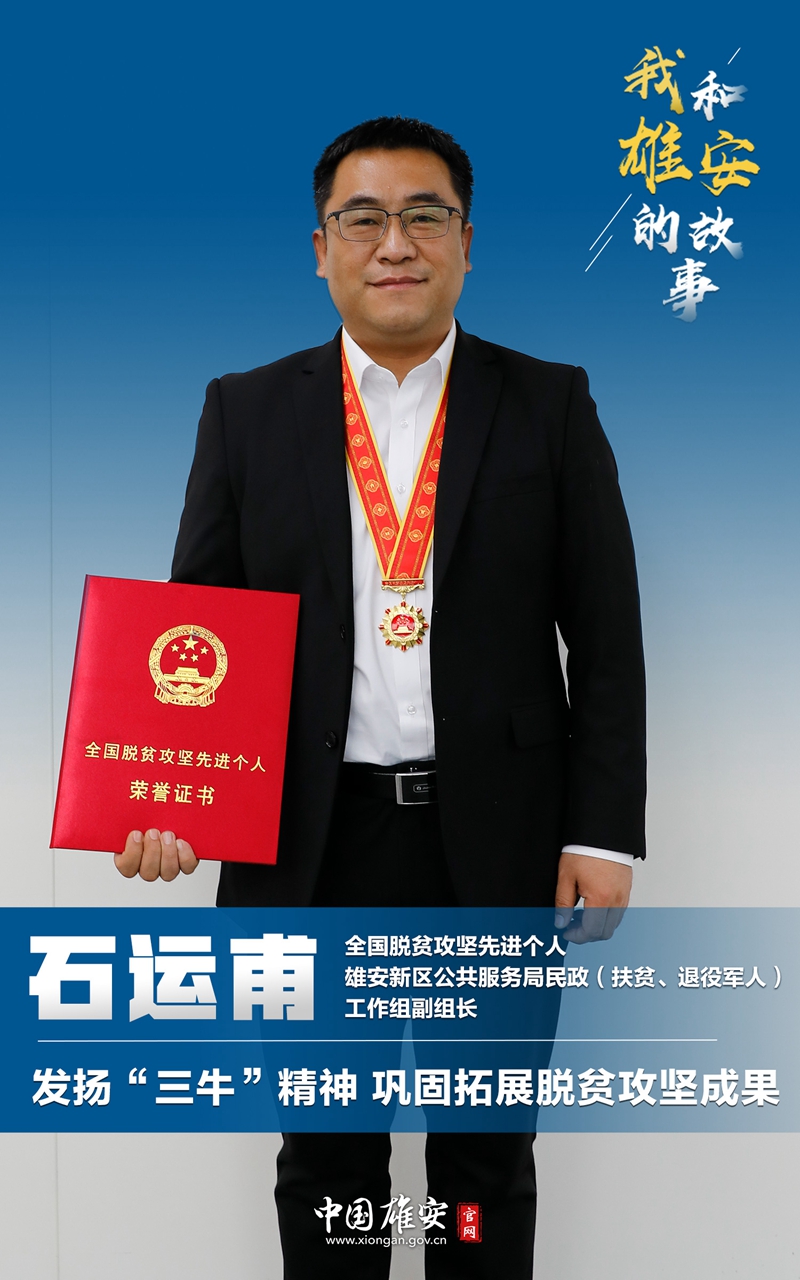 “全国脱贫攻坚先进个人”石运甫是雄安新区公共服务局民政(扶贫、退役军人)工作组副组长,具体负责新区的脱贫攻坚工作,他工作认真负责,靠前“作战”,赢得赞誉。近日,记者专访了石运甫。面对镜头,石运甫讲述了他和雄安的故事。
