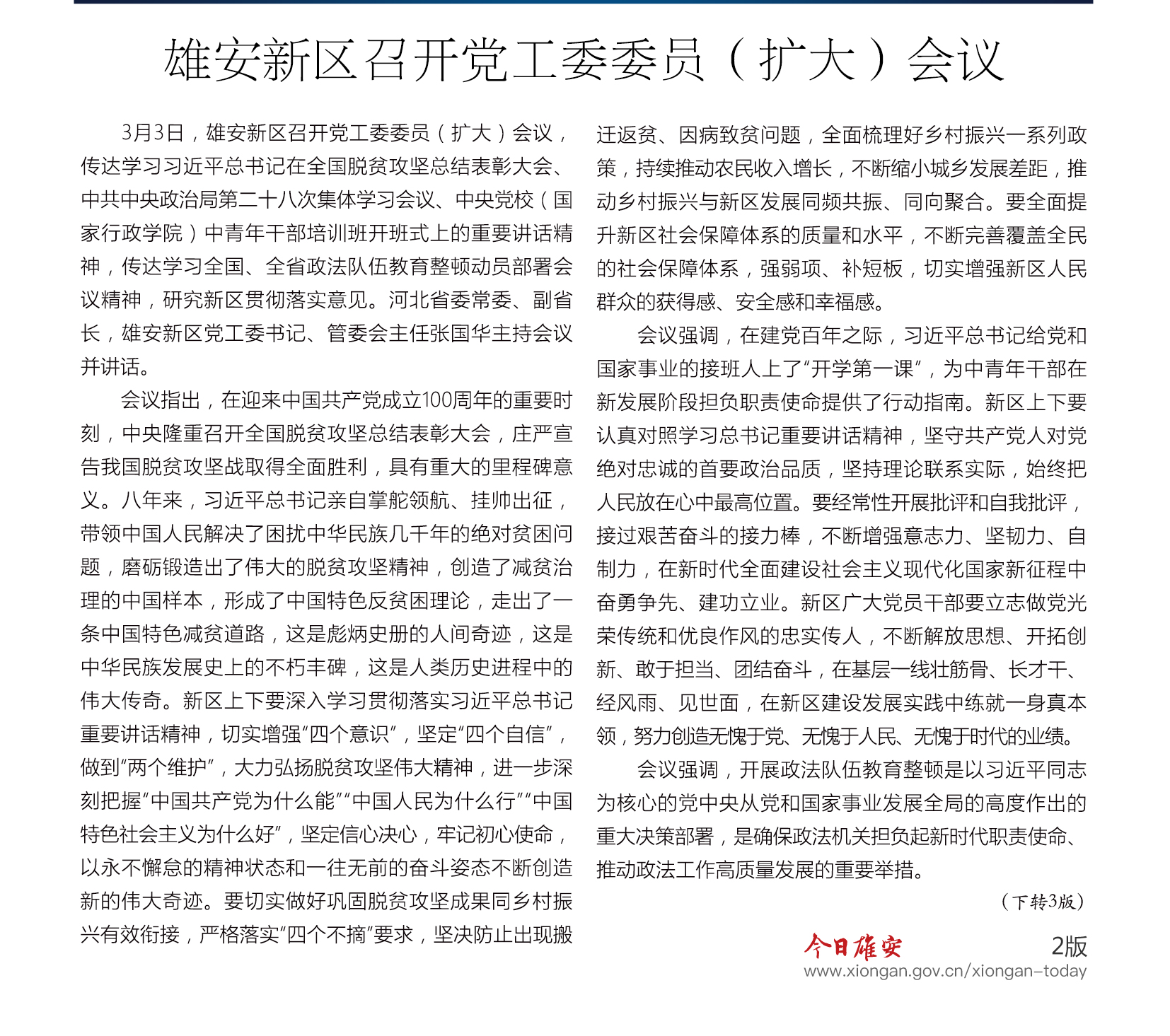 【雄安之声】雄安新区召开党工委委员(扩大)会议