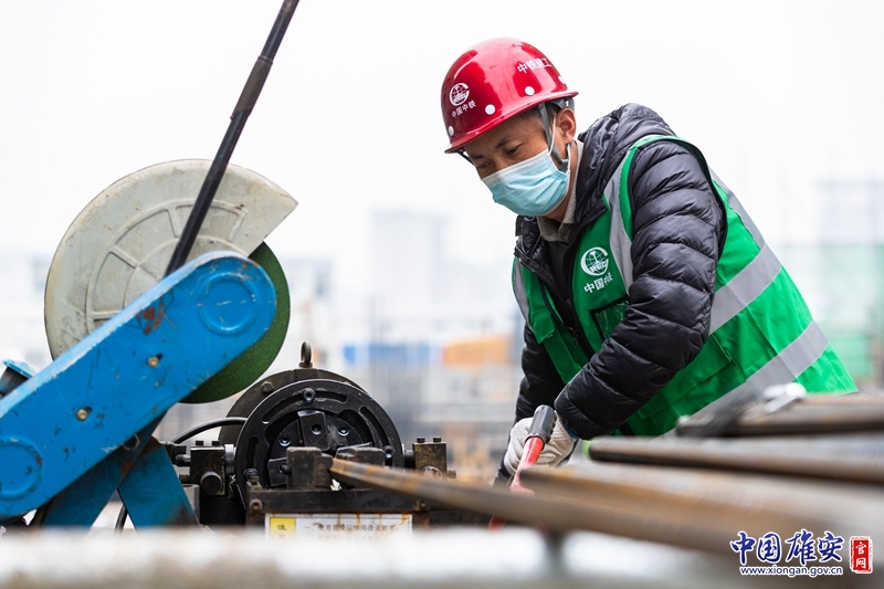 李瑞杰在进行钢筋绑扎。中国雄安官网记者高盟 摄