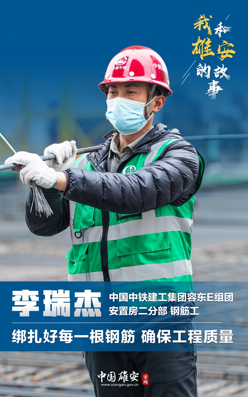 作为一名钢筋工,李瑞杰认为,绑好每一根钢筋,确保每一根钢筋的规格、数量、间距、位置的正确性,发扬不怕苦不怕累的精神才是工匠精神。同时也只有高标准严要求自己,做好本职工作,才能确保工程质量,确保“雄安质量”。