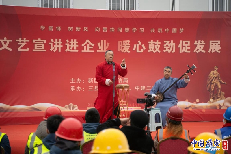 雄安新区宣传网信局组织开展“文艺宣讲进企业 暖心鼓劲促发展”志愿服务活动。以形式多样、内容丰富的文艺演出和健康检查、普及应急知识等暖心服务,给建设者鼓劲加油送温暖,关爱保障建设者身体健康,丰富了建设者的文化生活。