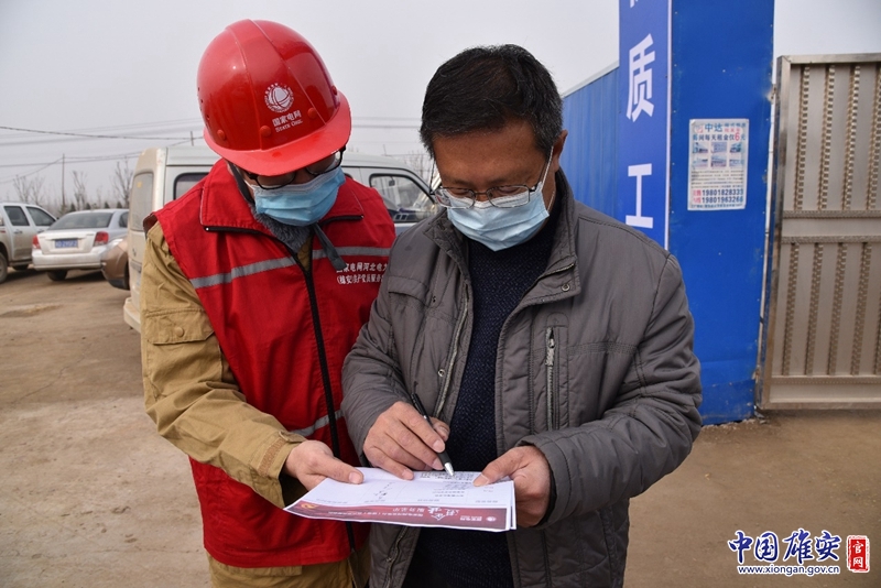 在绿博园现场,志愿者向建设者普及安全用电知识。国网雄安新区供电公司共产党员志愿服务队供图