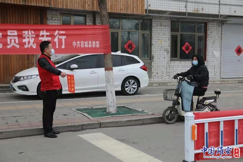 容城志愿者引导行人文明驾驶。容城县委宣传部供图