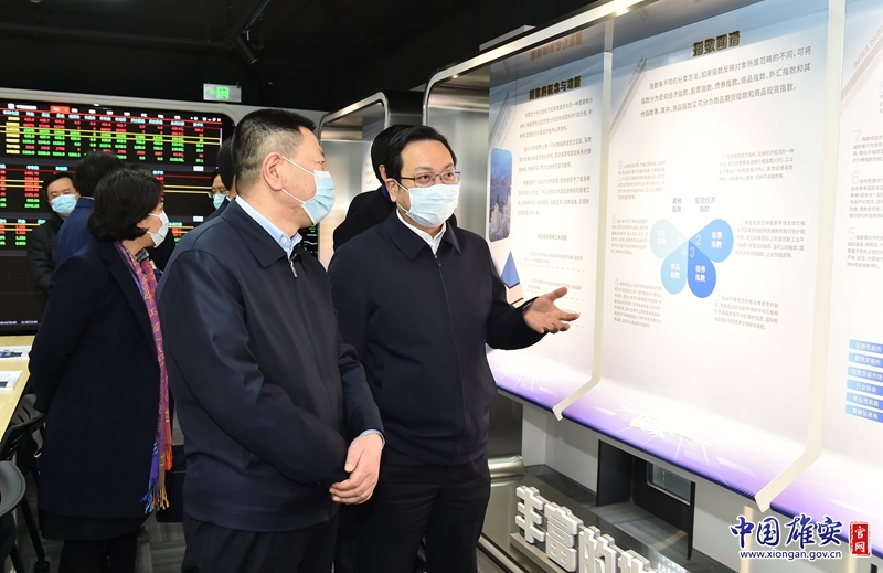 在雄安市民服务中心企业办公区,张国华认真了解中证商品指数有限责任公司组建和业务开展情况,并叮嘱有关方面全力为企业提供“贴身”优质服务。他强调,中证商品指数有限责任公司是国家具有战略性、权威性、前沿性、创新性的金融基础设施,产品模式新,与新区建设数字城市、打造金融科技创新中心的发展定位高度契合。希望中证商品指数有限责任公司,不断加强业务运营创新,加快金融服务布局,充分发挥自身技术、人才、产业链优势,推动金融服务和现代科技融合发展,为新区建设现代化的金融体系作出贡献。