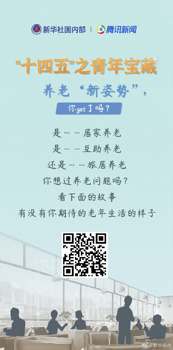 当你老了,你憧憬的老年生活是什么样?你愿意买养老保险吗?延迟退休如何看?老年生活怎么过?快来看系列H5小剧场《“十四五”之青年宝藏》,带你了解养老“新姿势”。识别图中二维码,体验第四集→