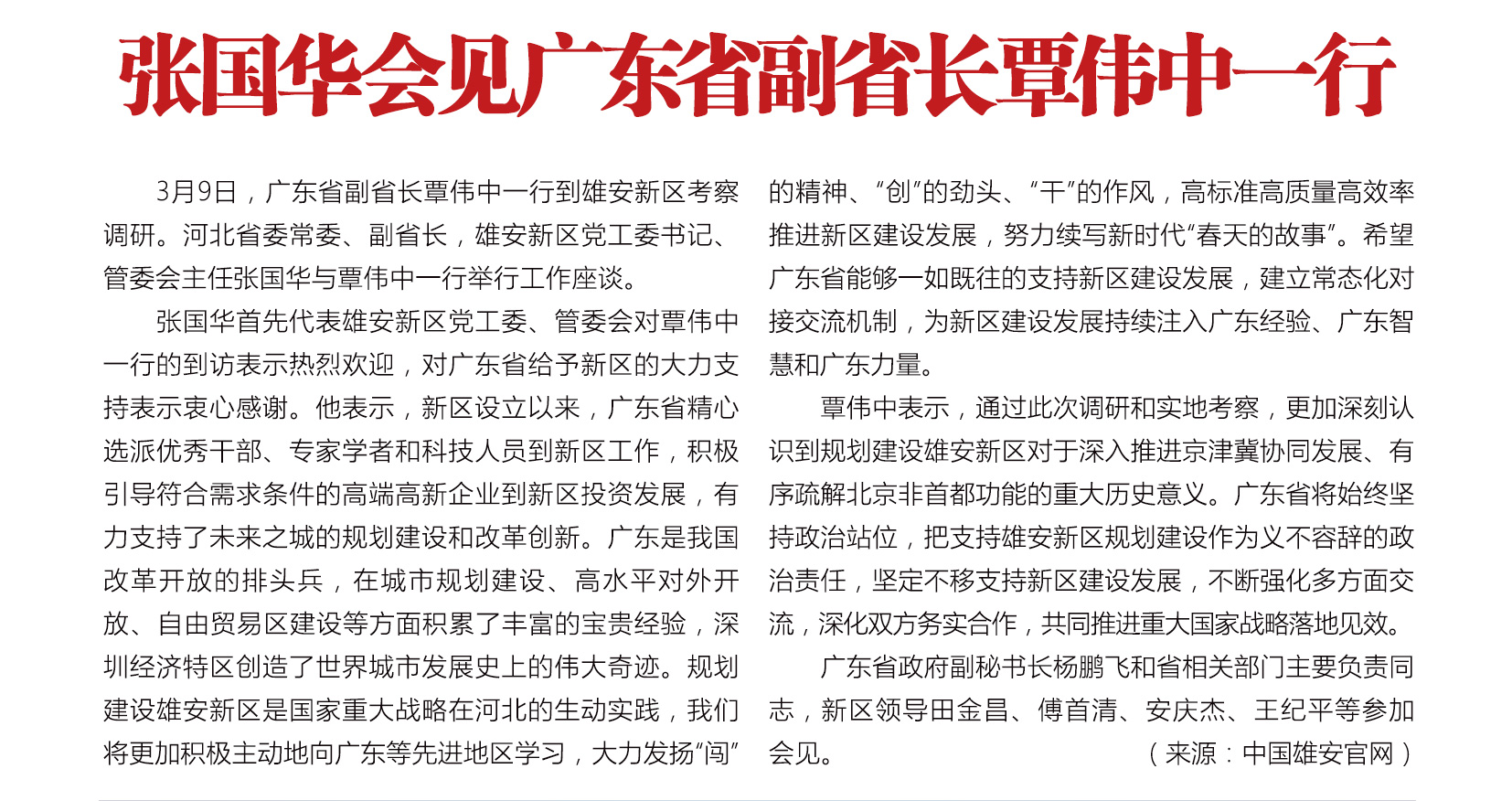【雄安之声】张国华会见广东省副省长覃伟中一行