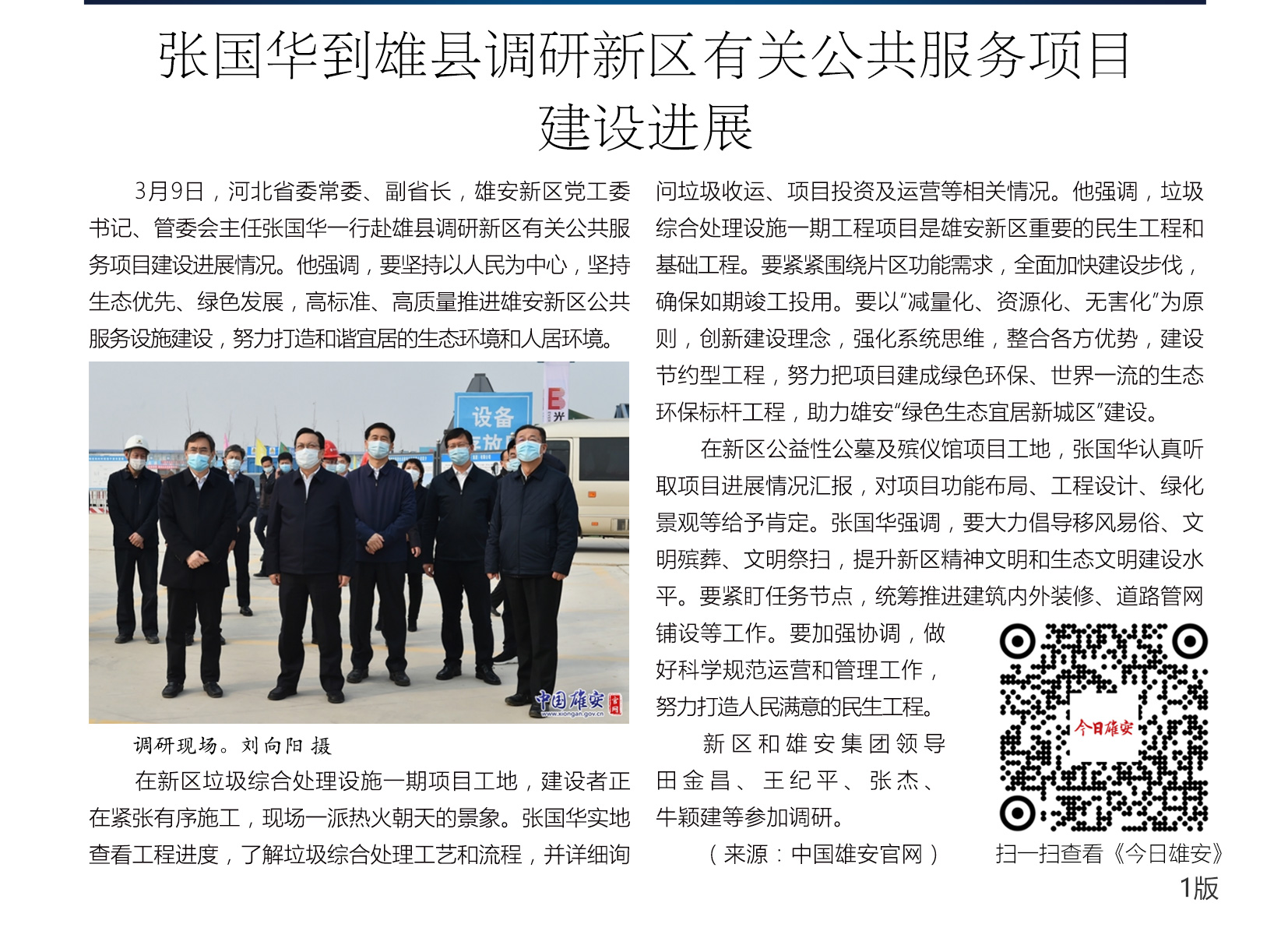 时政播报丨张国华到雄县调研新区有关公共服务项目建设进展