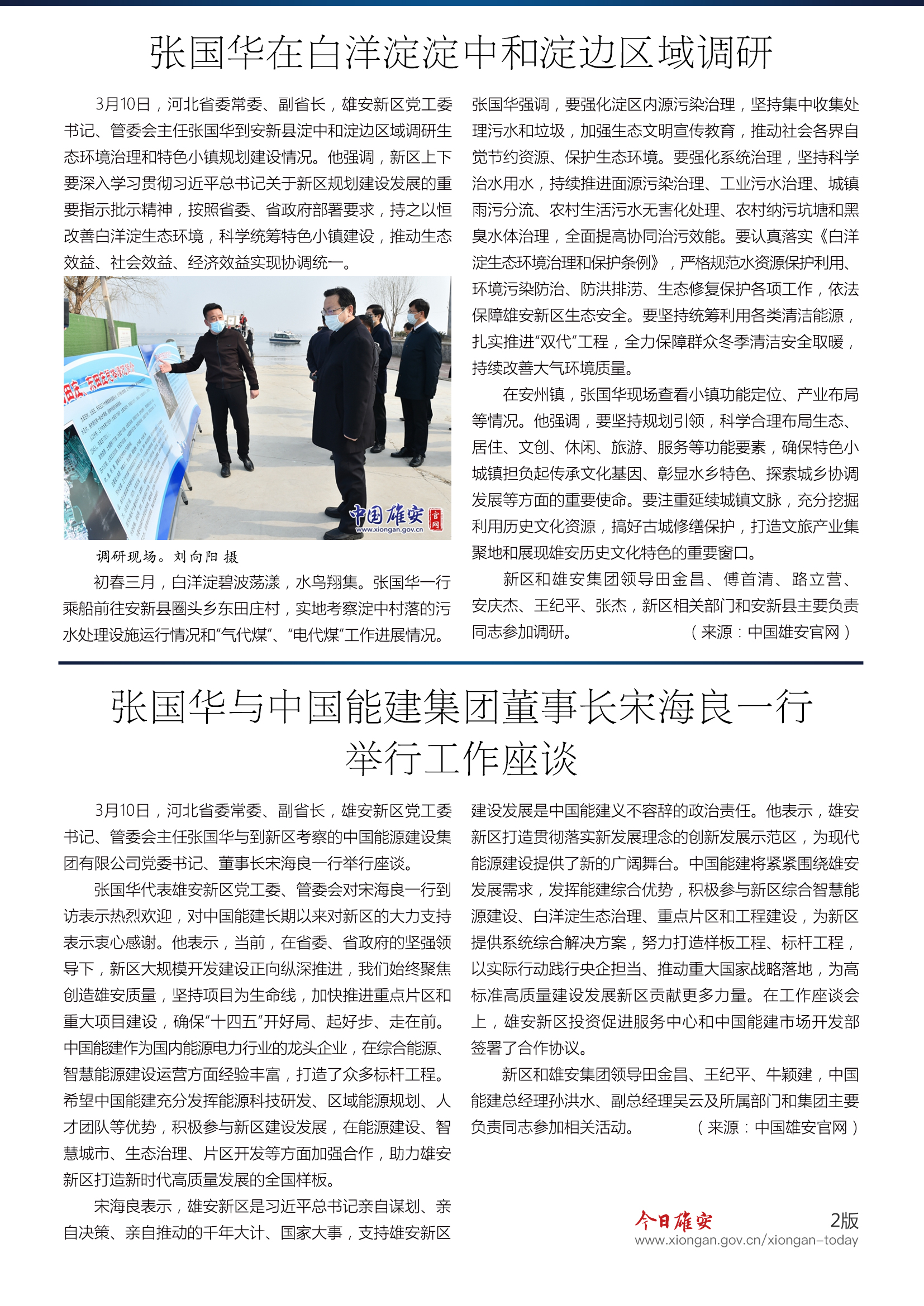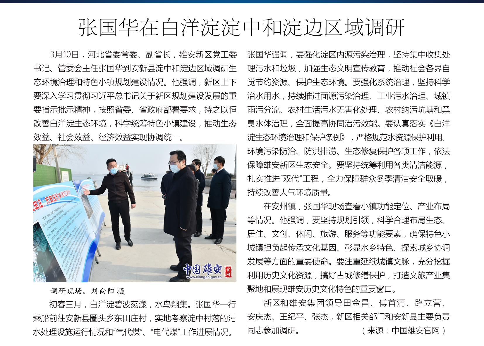 3月9日,河北省委常委、副省长,雄安新区党工委书记、管委会主任张国华一行赴雄县调研新区有关公共服务项目建设进展情况。