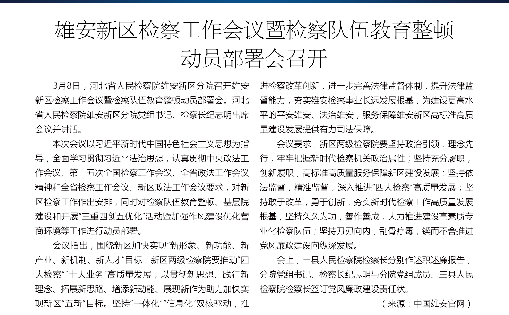 【雄安之声】雄安新区检察工作会议暨检察队伍教育整顿动员部署会召开