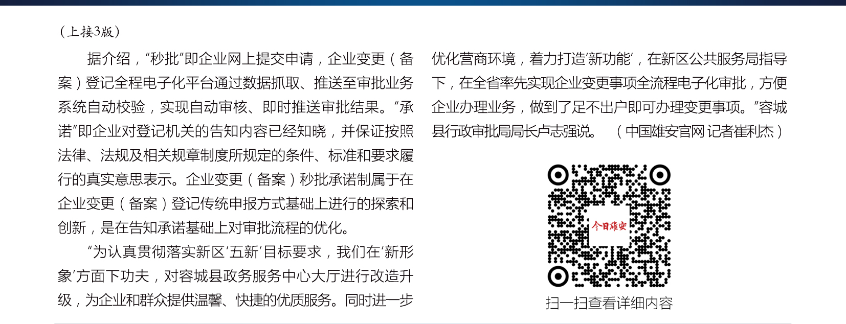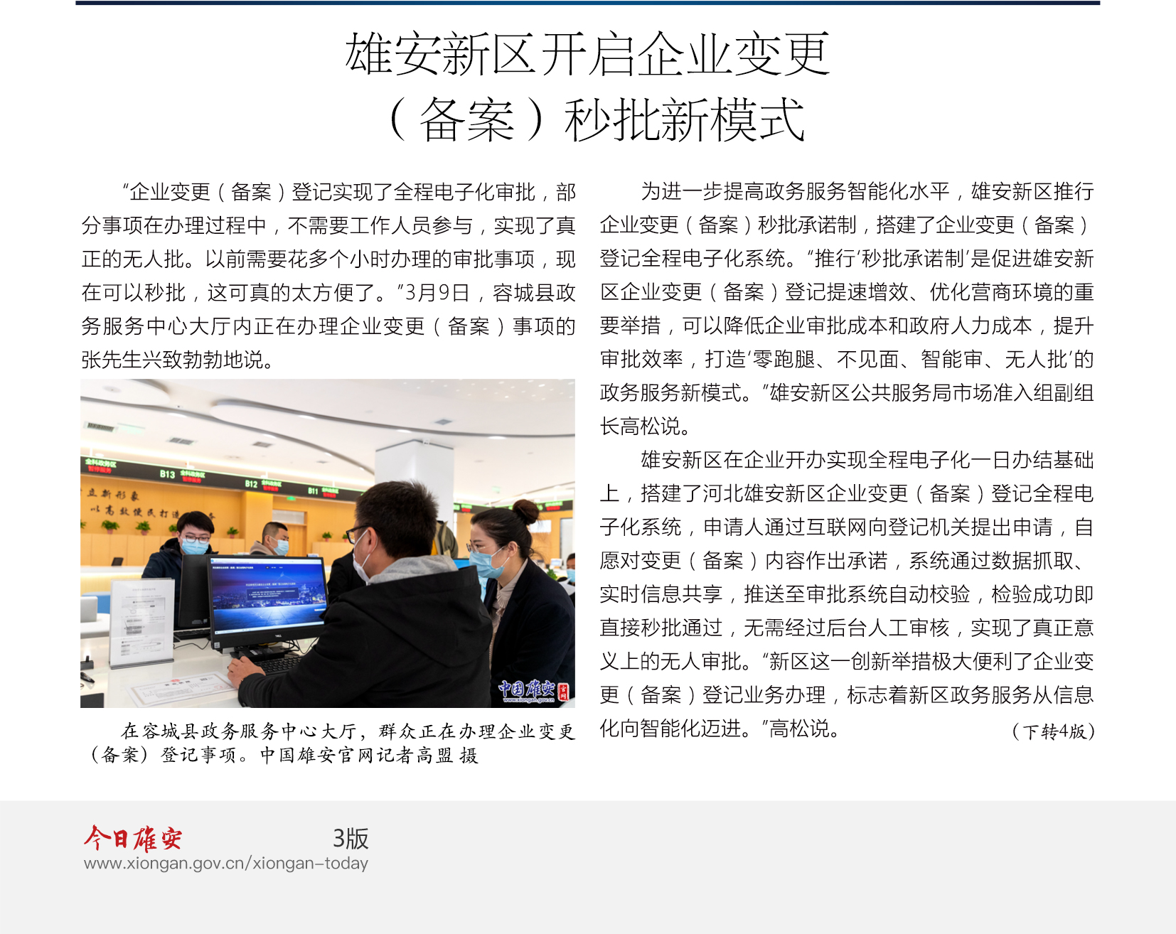 【雄安之声】雄安新区开启企业变更(备案)秒批新模式