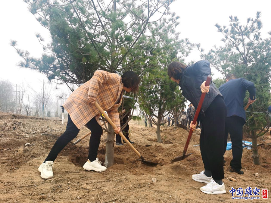 中国雄安官网3月13日电(李元闯)为践行生态文明理念,努力建设绿色低碳新区,3月12日上午,雄县各相关部门及企业70个单位出动800余人,来到大广高速白洋淀引线沿线,种下了白皮松、法桐、海棠、白蜡、樱花、元宝松等60余种树木,绿化面积达10000余平方米。