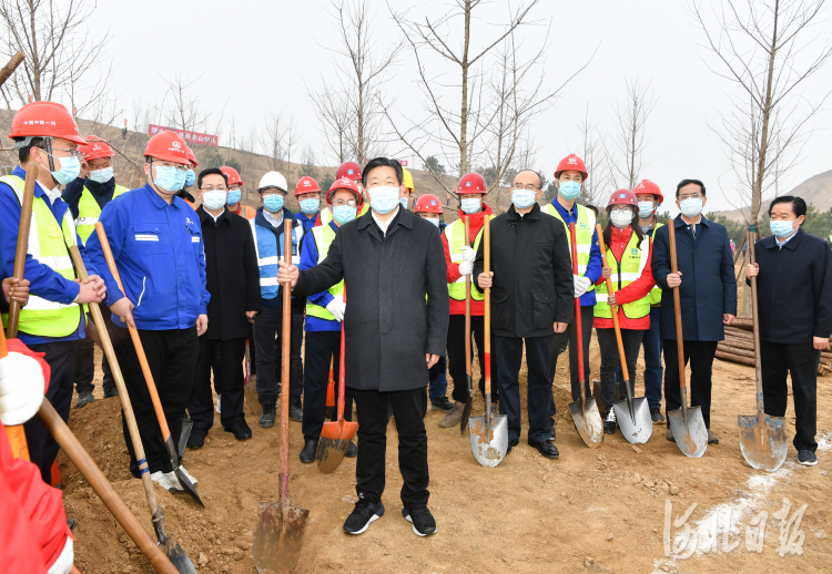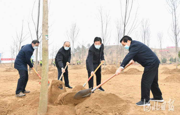 2021年3月12日是第43个植树节。上午,省委书记、省人大常委会主任王东峰,省委副书记、省长许勤,省政协主席叶冬松,省领导袁桐利、高志立、张国华、范照兵在雄安新区雄安郊野公园开展义务植树活动,带头推进国土绿化行动。河北日报记者赵威 摄