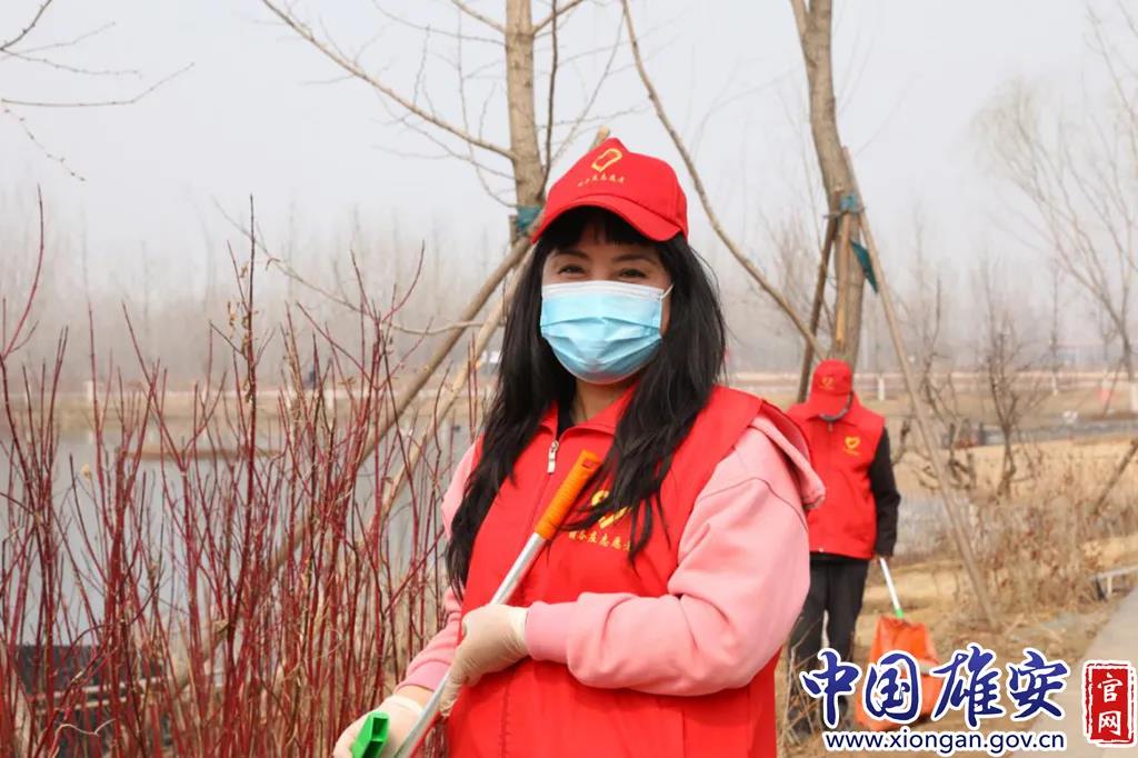 胡各庄村志愿者正在天鹅湖公园打扫卫生。于浩 摄