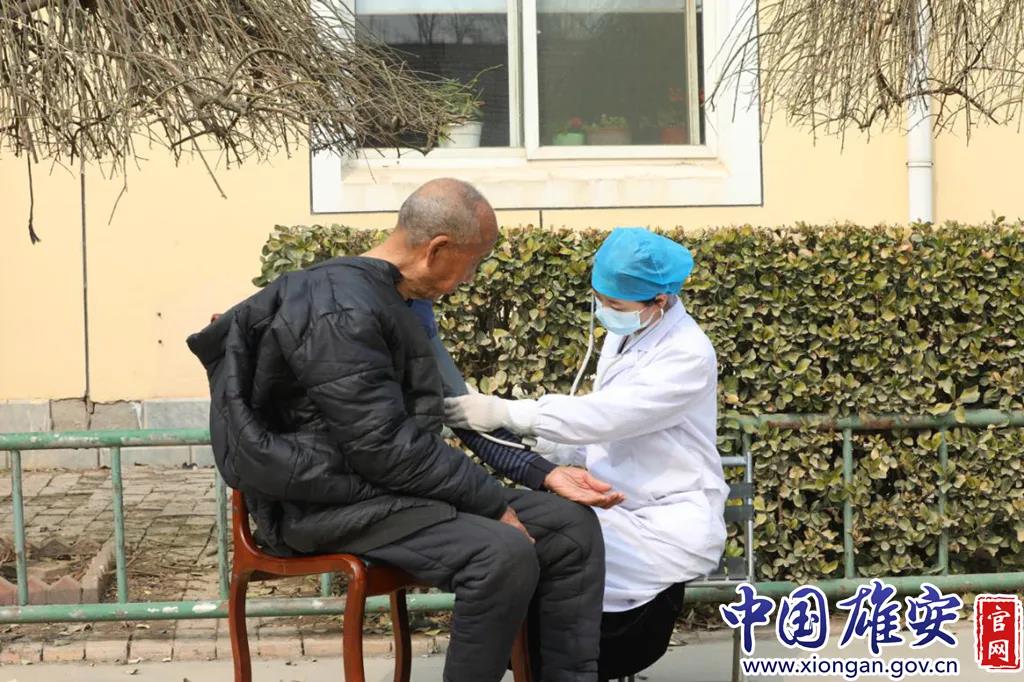 龙湾镇中心卫生院医护人员正在为收养老人测量血压。于浩 摄