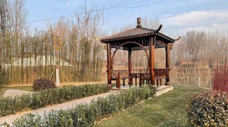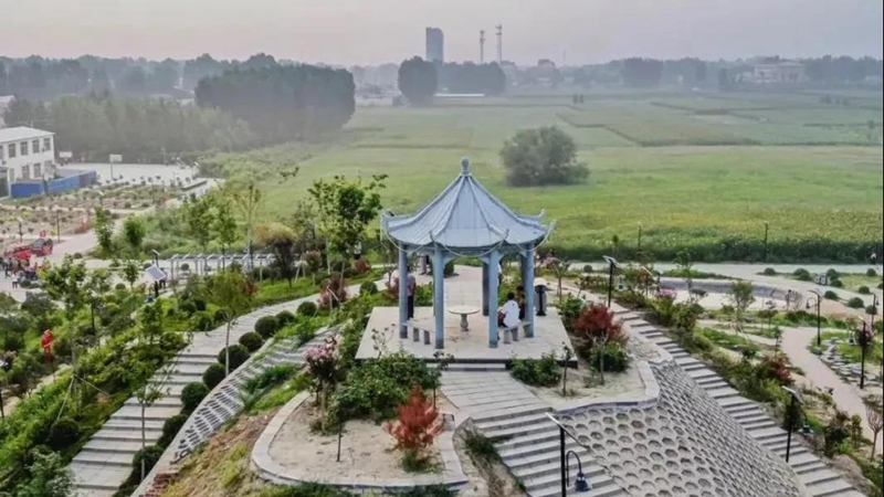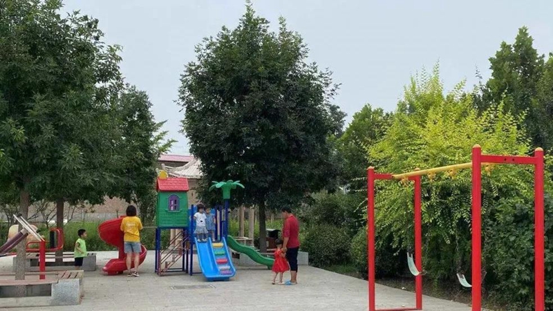 园内建有湖泊、石桥、喷泉,种植松树、柏树、月季等十二种观赏乔木和花卉,在小广场北侧打造了一处微地形景观。园中还竖立了一块景观石,铺装、优化游赏路面,设有高标准水冲式公共厕所,全园安装音响系统,使公园更富有动感。公园建成后美化了周边环境,彰显了文化底蕴,为村民提供了又一健身娱乐场地,更有力地推动了公园游园建设,创造美好生活。