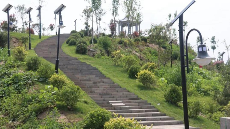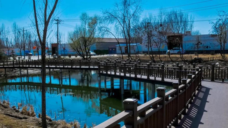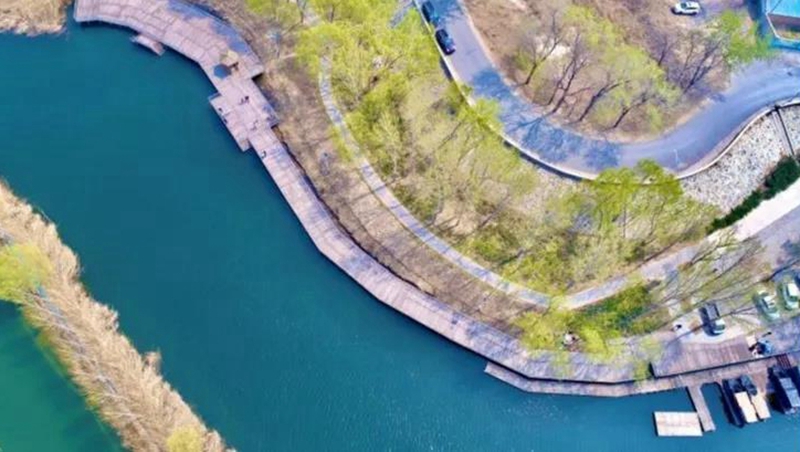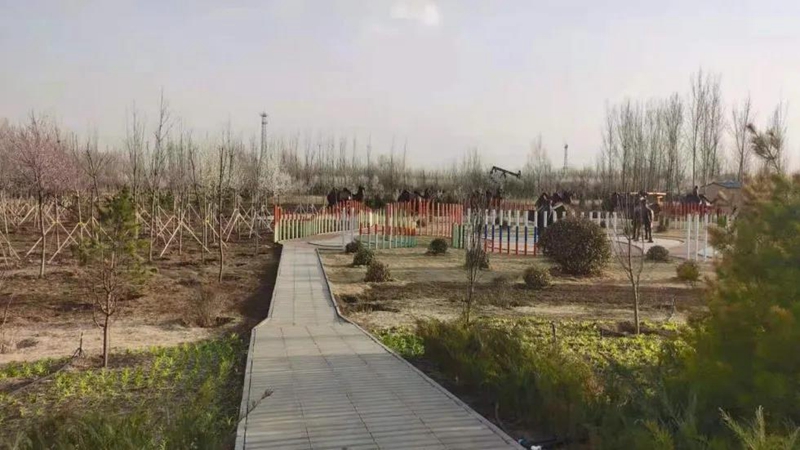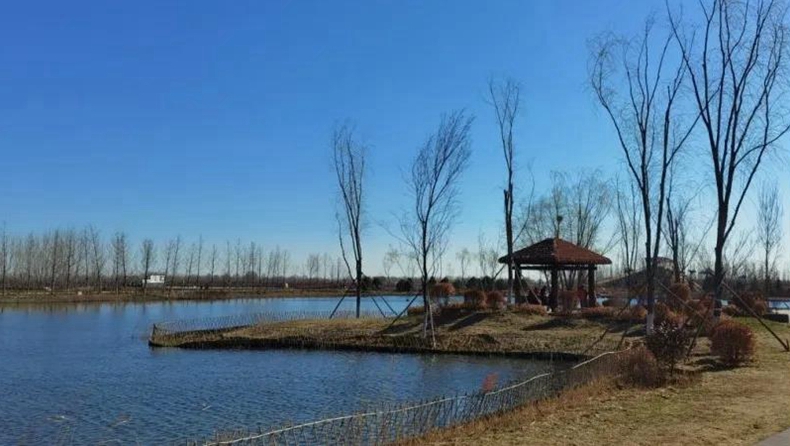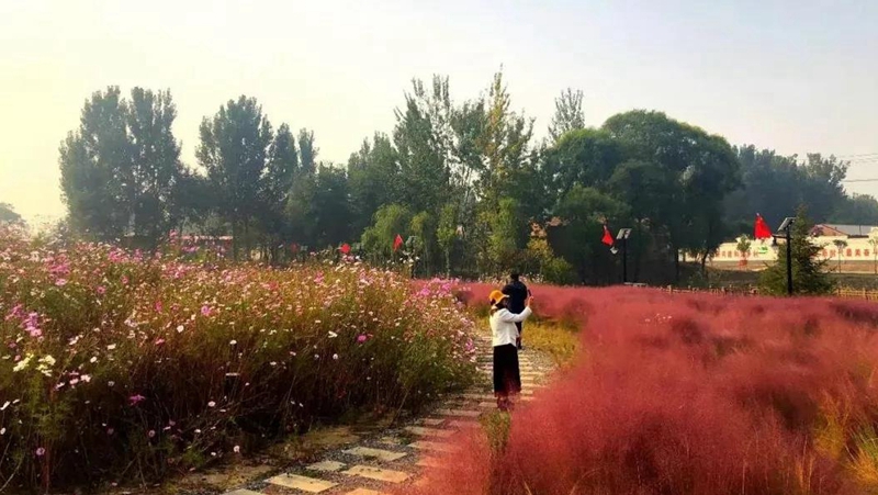 千里堤压重平台公园依白洋淀、靠千里堤而建,从北到南贯穿七间房乡半境,共涉及5个村。2019年依托“三清一拆”工作,七间房乡对压重平台七间房村段进行清理和基础打造,对原有西大坞段进行了整体提升,公园占地总面积达到60亩。该公园充分利用地形道路、闲置空间,充分发挥植物形体、色彩和季相等自然美作用,种植以海棠、碧桃等乔木为主,以卫矛、连翘等灌木为辅的小品造型,其余空间以宿根花卉填补,形成“意、趣、神、色”兼备的园林小游园。其间,平台铺设人行道一条,对原有停车场进行升级改造,设置休闲座椅,建设中心休闲广场2处,配备简单健身器材,用闲置水瓮、磨盘等点缀其间,形成独特人文小品景观。自然景观与人文景观交相辉映,形成了独具特色的淀边风景。